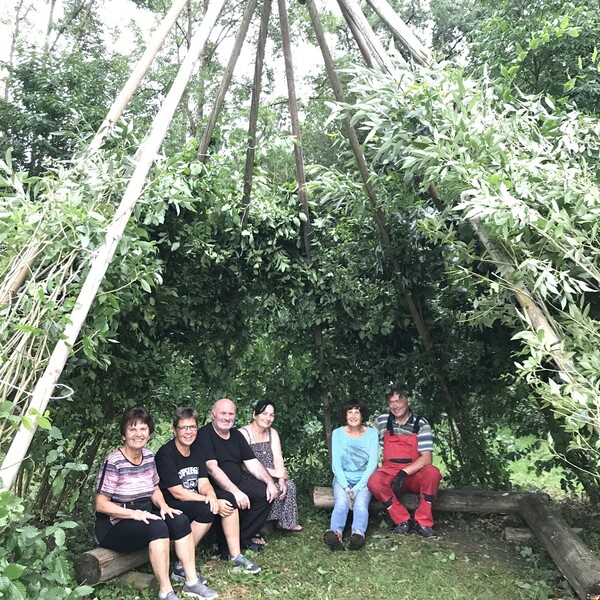 7 x 2 Hände haben das Weidenhaus in unserem Pfarrgarten wieder in Schuss gebracht.