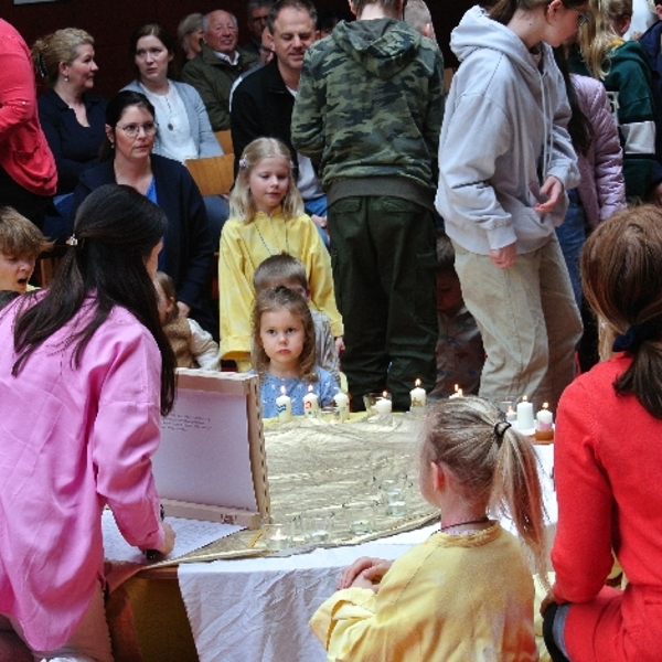 Am Ostersonntag waren alle Kinder gebeten, die am Karfreitag beim Kreuzweg dabei waren, ihre gebastelten Osterkerzen mitzunehmen. Nach einer Osterprozession durch die Kirche, wurde ein richtiges Lichtermeer entzündet und schließlich die Auferstehungsgeschichte Jesu am Kamishibai-Theater erzählt. Der Versuch dieses Wunder in Worte zu verfassen, scheint geglückt zu sein, wie die leuchtenden und aufmerksamen Augen der Kinder verrieten. Es war eine große Freude, dieses Fest wieder gemeinsam in der Kirche feiern zu können!
