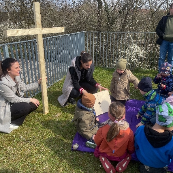 Am Karfreitag wartete auf die Kinder ein Kreuzweg mit verschiedenen Stationen zum Mitmachen. Es wurde gesungen, gekostet, gerochen, gebastelt und gefühlt - mit allen Sinnen waren knapp 30 Kinder mit ihren Familien mit großer Aufmerksamkeit und Freude dabei. Um den Leidensweg Jesu noch anschaulicher zu gestalten, wurde die Geschichte begleitet vom Kamishibai-Theater, das die Bilder dazu zeigte. Bei der letzten Station konnten die Kinder schließlich eine kleine Osterkerze basteln und verzieren, die dann am Ostersonntag entzündet wurde.