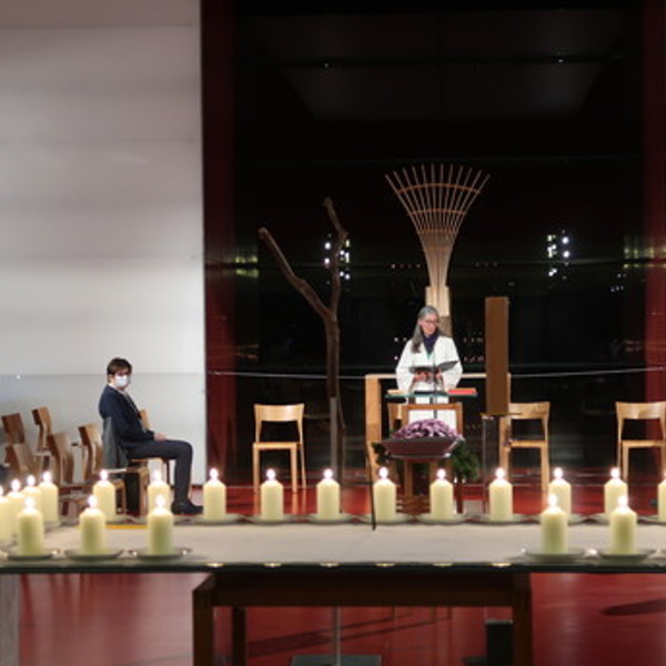 Bei diesem Gottesdienst haben wir an unsere Verstorbenen gedacht. Im Gedenken an die verstorbenen Menschen aus unserer Gemeinde wurden die Namen verlesen und für jeden eine Kerze angezündet...