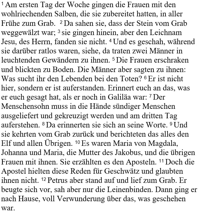 Aus dem Lukasevangelium (Lk 24,1-12):