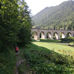 Wir gingen los auf dem so genannten Bahnwanderweg entlang der beeindruckenden Bahnstrecke in Richtung Breitenstein. Dieses historische Bahnbauwerk weist zahlreiche spektakuläre Brücken und Viadukte auf und ist ein einzigartiges Meisterwerk der (damaligen) Technik. Diese Bahn wurde 1854 nach einer nur sechsjährigen Bauzeit als erste Gebirgsbahn der Welt eröffnet. Geplant wurde sie von Carl Ritter von Ghega und am Bau waren rund 20 000 Arbeiter*innen beteiligt! Inzwischen wurde die Semmeringbahn zum Unesco-Weltkulturerbe erklärt!