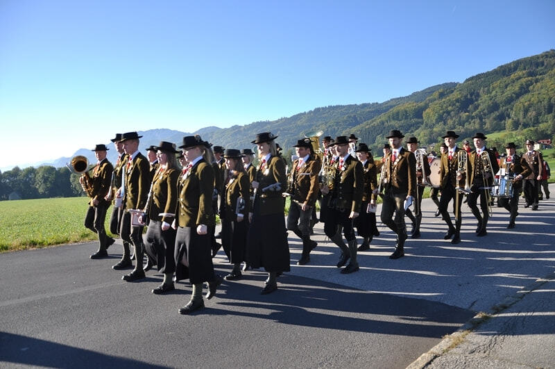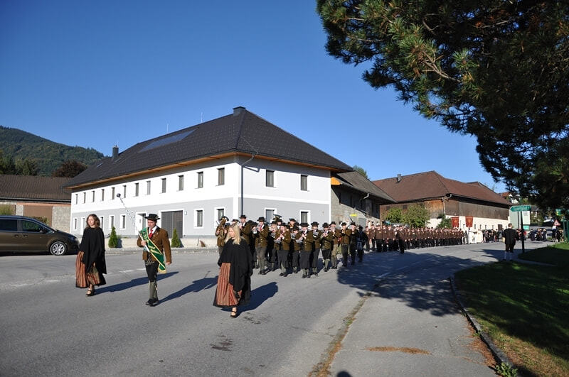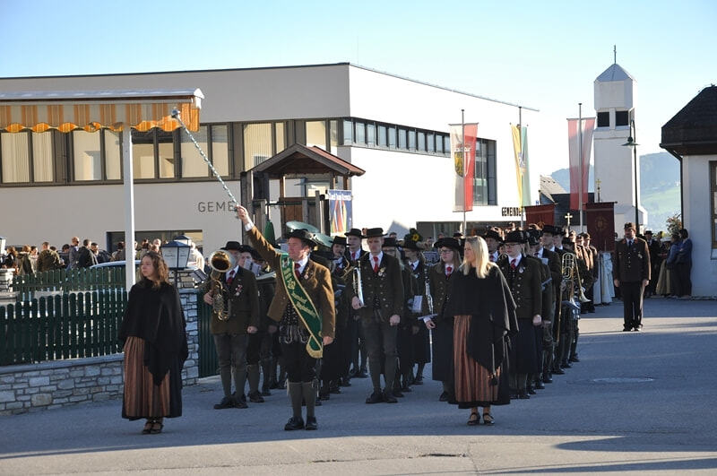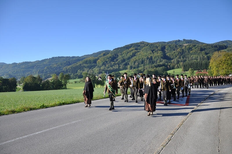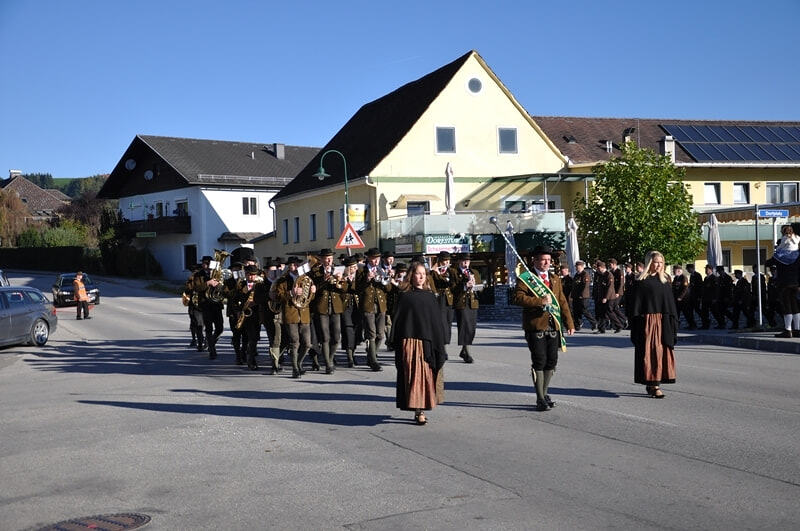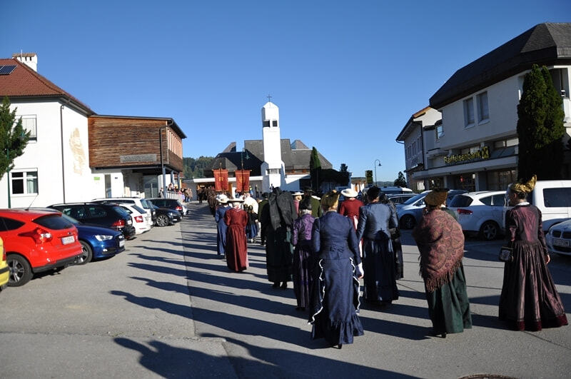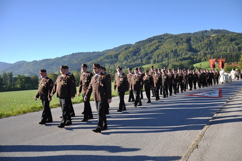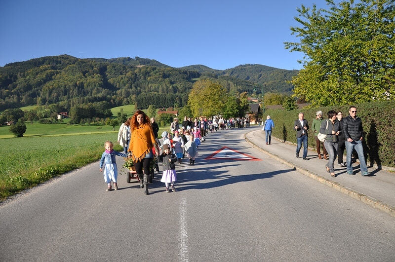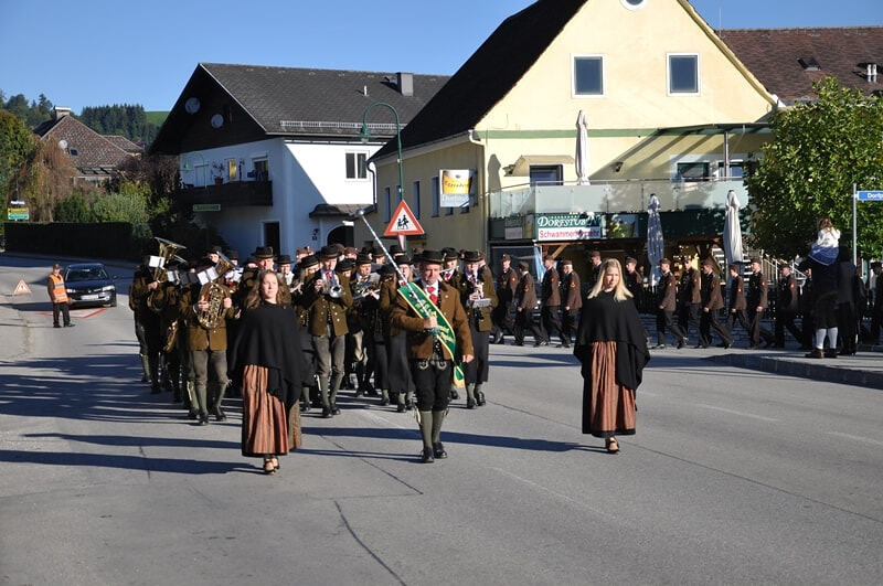 Die Landjugend schmückte die traditionelle Erntekrone und trug diese zum Altar. Heuer zelebrierte Pater Markus Zimmermann die heilige Messe.