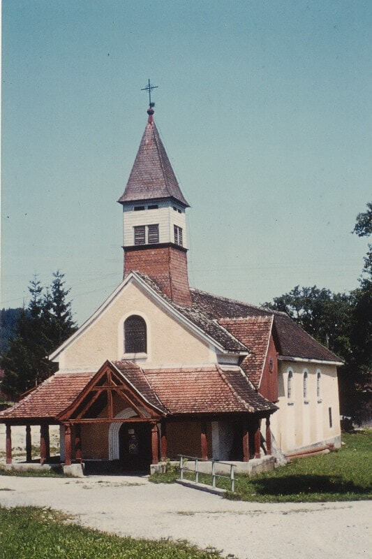 Bereits beim Bau der Volksschule 1926 wurde unter den Gemeinde-Verantwortlichen, den Lehrern und auch dem damaligen Pfarrer von Kirchdorf Pater Konrad Haydvogel der Wunsch nach einem Gotteshaus laut. Bald wurde ein Verein zur Errichtung einer Schulkapelle gegründet. Der Obmann war Karl Huemer (vulgo Baschinger von Wanzbach). Zahlreiche Spenden gingen für diesen Bau ein. Man entschloss sich, den der Schule gegenüberliegenden Schmiedestadel umzubauen und zu einer Kirche zu adoptieren (heute steht auf diesem Platz die Raiffeisenbank).