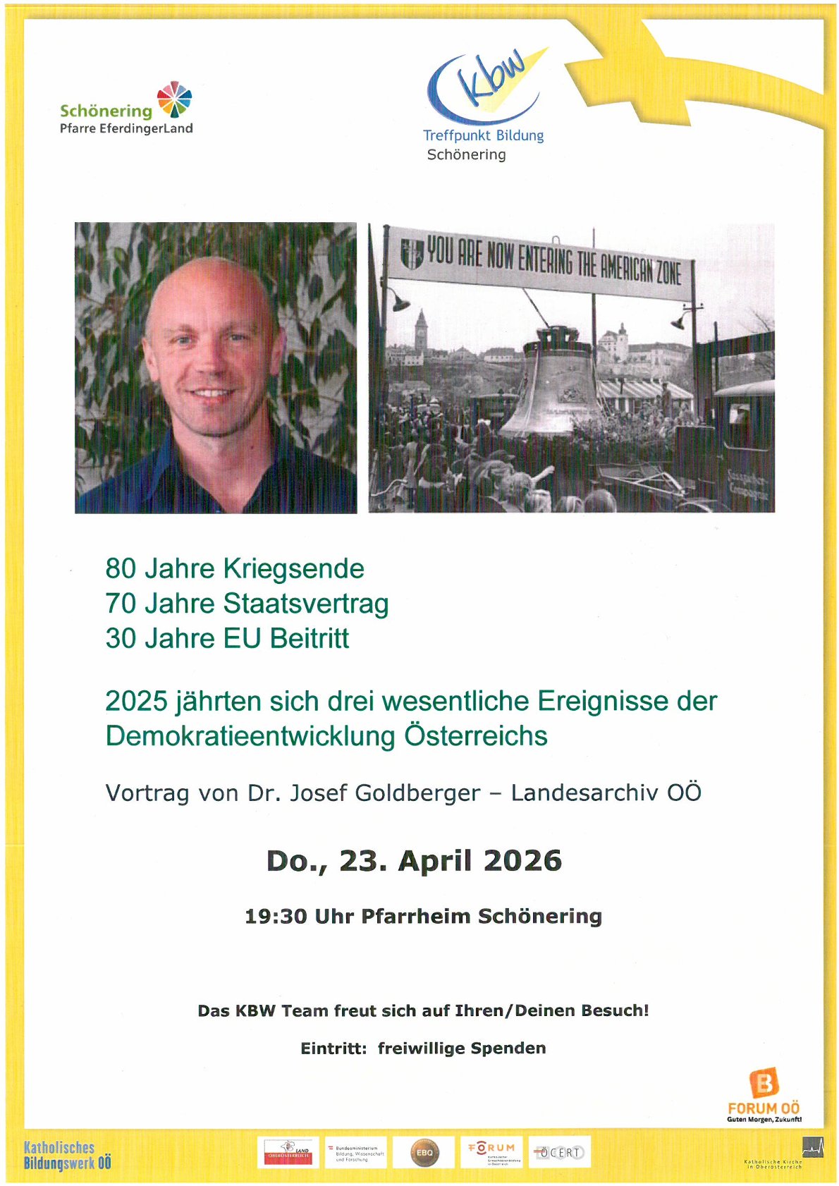 80 Jahre Kriegsende - 70 Jahre Staatsvertrag - 30 Jahre EU Beitritt; Vortrag von Dr. Josef Goldberger