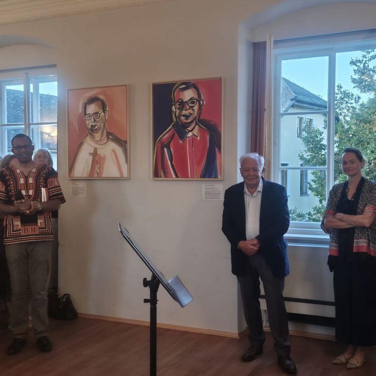 Die Künstlerin Antonia Riederer vervollständigte die „Pfarrer-Galerie“ mit den Bildern vom verstorbenen Pfarrer Rudolf Wolfsberger und dem scheidenden Pfarrvikar Dr. Paulinus Anaedu.