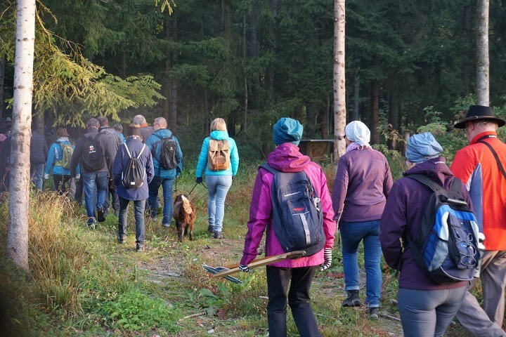 Von der Pfarrkirche ging es in das Hartkirchner Moos zur ersten Station, einer Jagdkanzel.