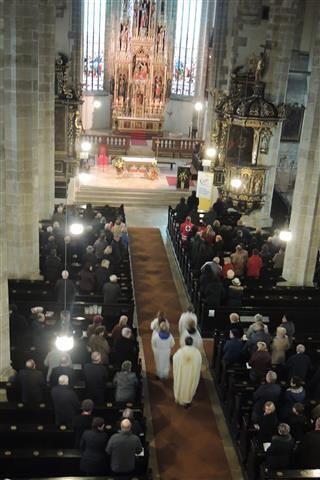 Ein besonderes Geschenk für die Gottesdienstbesucher/Innen war die musikalische Gestaltung. Einfühlsam begleitet von der Organistin Mag.a Michaela Deinhamer machte Mag.a Regine Hangler den „Eferdinger Dom“ mit ihrer wunderschönen Sopranstimme zum Klangerlebnis. In seiner Predigt deutet Dr. Josef Keplinger, der Liturgiereferent der Diözese Linz, die festliche Stunde dreifach: