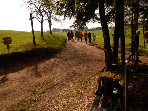 In den einzelnen Stationen vom Kalvarienberg in Haibach bis zur Donau bei Schlögen gab es für die Teilnehmerinnen und Teilnehmer unterschiedliche Anregungen zum Thema: Mit der Zeit gehen, langsam gehen, abkürzen, beschleunigen, Brücken, die verbinden oder trennen, die Zeit überbrücken,unsere begrenzte Zeit hier auf der Erde,....viele Bilder, die zum Nachdenken anregten.