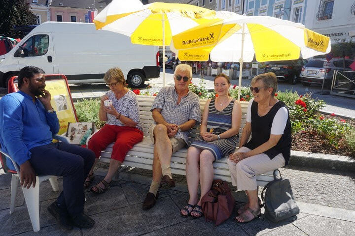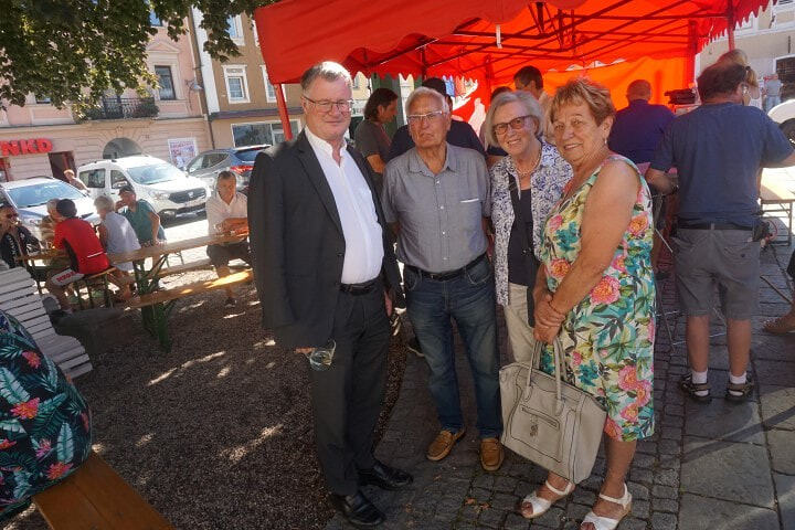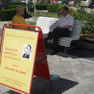Der Bischof und seine Mit-Zuhörer mischten sich unter die Marktbesucher/Innen, sie hörten zu, sie versuchten Antworten, oder führten einfach ein Gespräch.