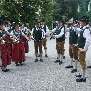 Musikalische Begrüßung durch die Schaumburg Jagdhornbläser/Innen im Schlosshof:
