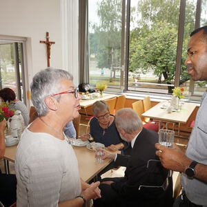 Kaffee, Kuchen, anregende Gespräche, Begegnung mit dem Bischofsvikar runden den Visitationsbeginn ab.