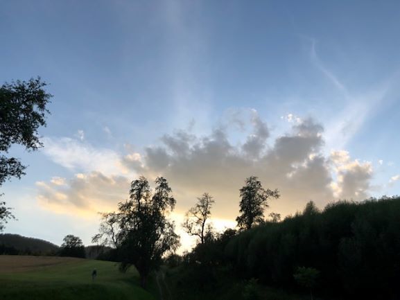 Die Teilnehmenden fanden die Zeit im einfachen DA-sein die Natur und sich selbst wahrzunehmen. Im Abschlussteil spürten die Meditierenden anhand einer Geschichte und bei meditativer Musik der eigenen Sehnsucht, ihrem Lebensdurst und ihrer Lebendigkeit nach. Und das alles bei einer wunderschönen lauen Abendstimmung mit Sonnenuntergang!