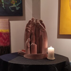 Die Arbeiten von Bruno Lipp sind aus Holz, Stahl und Ton. Seine besonderen Krippen und auch die meisterlich vollendeten Rakubrand Engel und Figuren waren sehr beeindruckend.