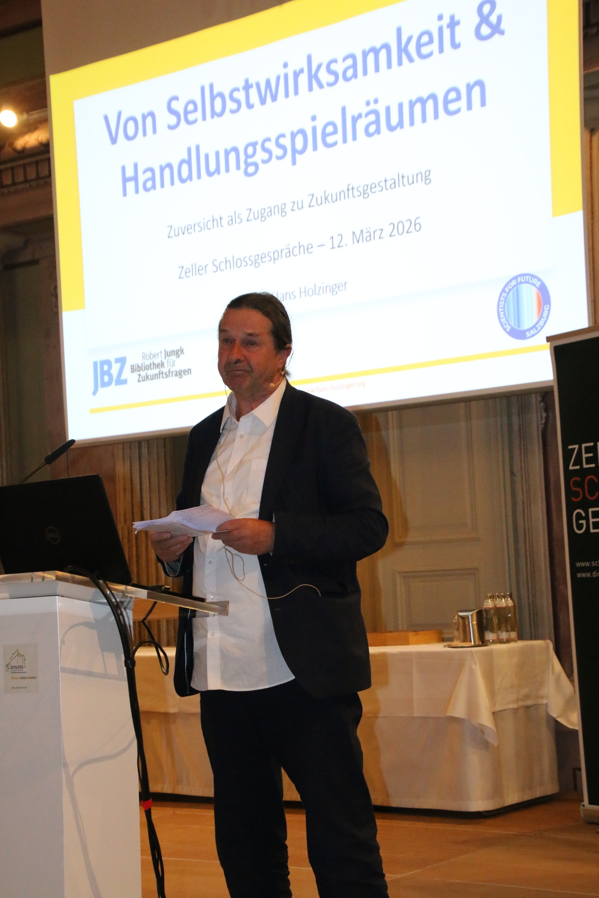 Einen Einblick in die Zukunftsforschung gab der ehemalige Leiter der Jungk-Bibliothek Salzburg, Hans Holzinger. Er verwies auf die Kraft der vielen Geschichten des Gelingens, die es meist nicht in die Schlagzeilen schaffen. Anlässlich des Befundes, dass die reichen Menschen nicht immer die glücklichen sind, weitete er den Blick von der Fixierung auf das Geld und machte nicht weniger als vier Währungen für ein gutes Leben aus: Geld, Zeit, Sinn und Gemeinsinn. Gerade angesichts der Klimakrise ist eine Transformation des Lebens und Wirtschaftens unumgänglich. Für den Weg dorthin zitierte er die Klimaforscherin Helga Kromp-Kolb: „Machen wir nicht das Mögliche, sondern machen wir das Notwendige möglich.“