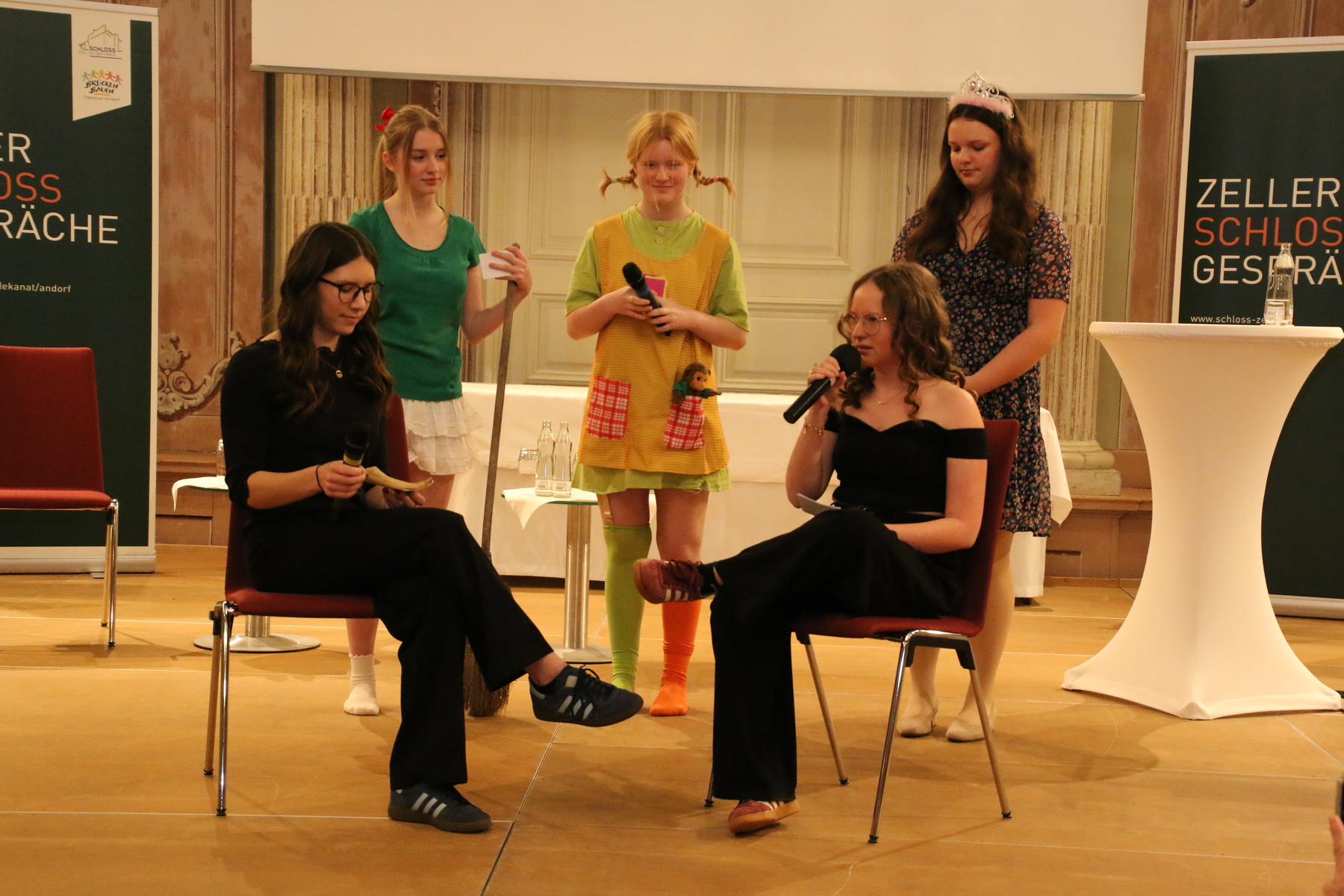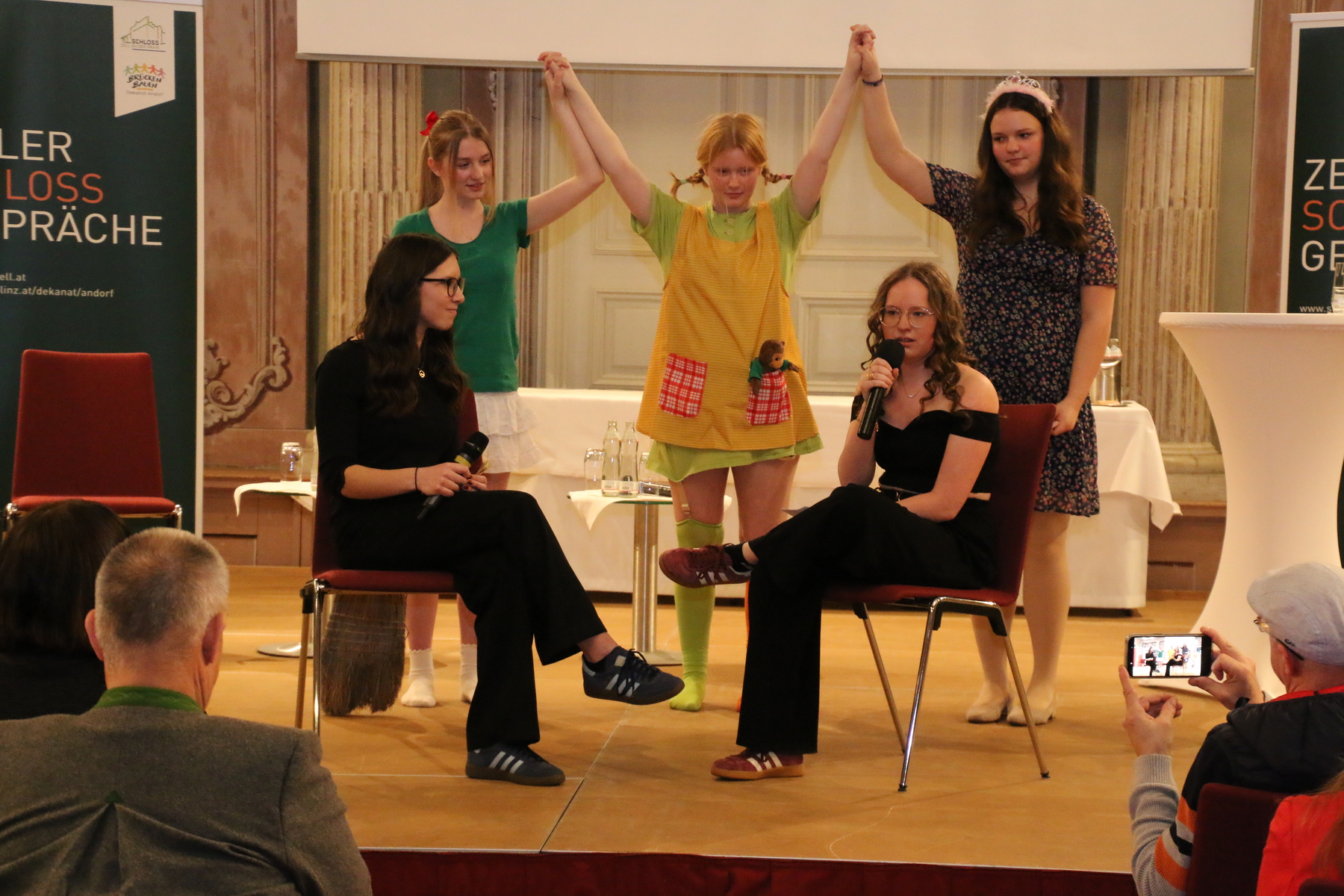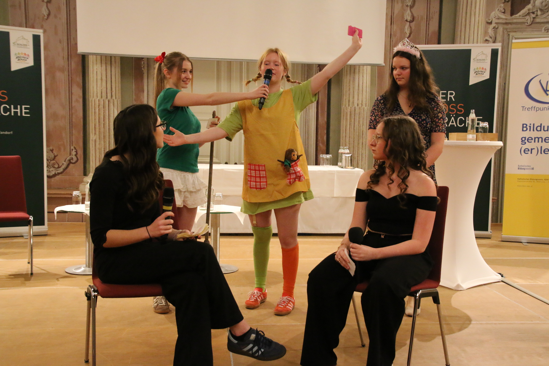 Zum Einstieg ließen sich fünf Schülerinnen des BORG Schärding in sehr erfrischender Weise von den „Helden ihrer Kindheit“ zu philosophischer Auseinandersetzung hinreißen. Bibi Blocksberg und Pipi Langstrumpf brachten sie etwa zur Erkenntnis, dass weniger die Zukunft das Problem ist, sondern unsere Angst vor ihr.
