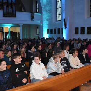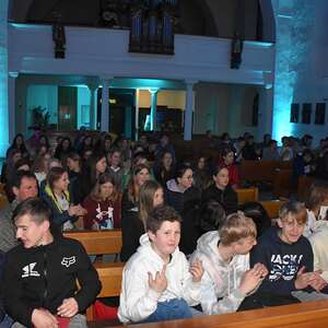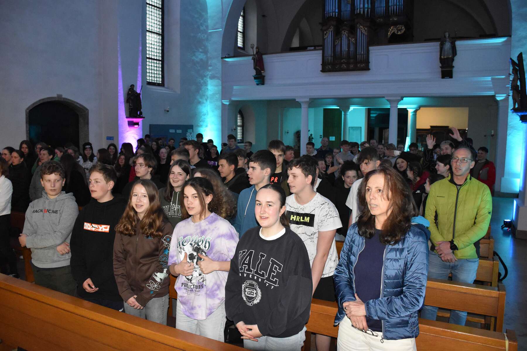 Beim liturgischen Abschluss feierten die Firmlinge gemeinsam eine abschließende Wortgottesfeier mit Pfarrgemeindeseelsorgerin Birgit Kopf, musikalisch begleitet wurde die Feier von der Band „Liederberga!“. Beim Schlusslied „Zuhause“ wurden alle Versammelten in der Kirche aufgefordert, beim Handy ihre Taschenlampe einzuschalten und gemeinsam die Pfarrkirche zum Leuchten zu bringen. Die Aufforderung „Komm, wir bring´die Welt zum Leuchten“ macht nämlich deutlich, dass es Mut braucht, um sich aufzumachen, die Welt besser oder erträglicher zu gestalten. Das funktioniert in vielen Fällen gemeinsam besser. Am besten aber, wenn wir uns gemeinsam aufmachen mit Menschen, die wir Freunde und Freudinnen nennen dürfen.