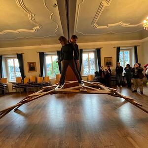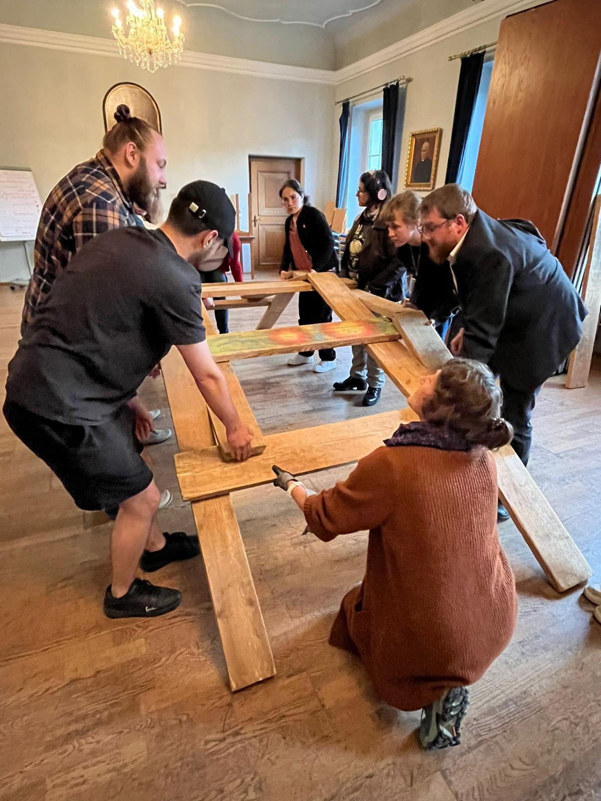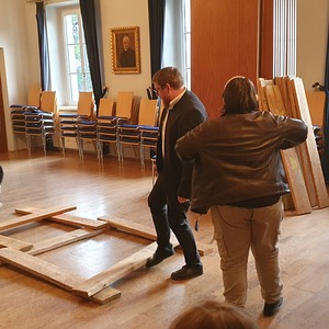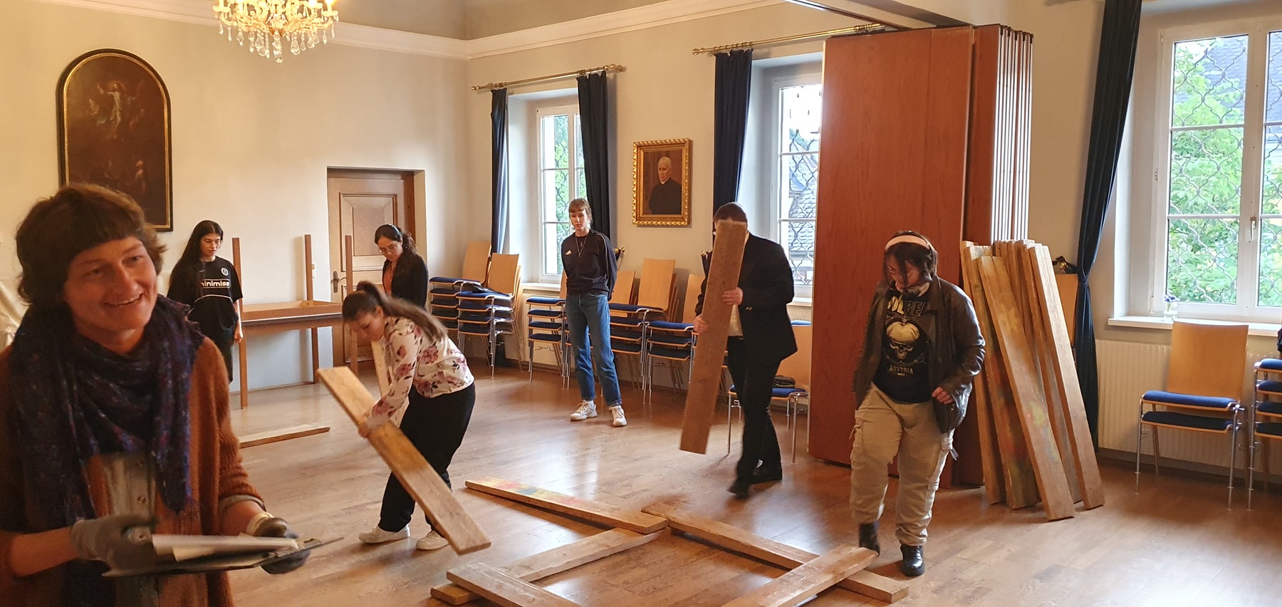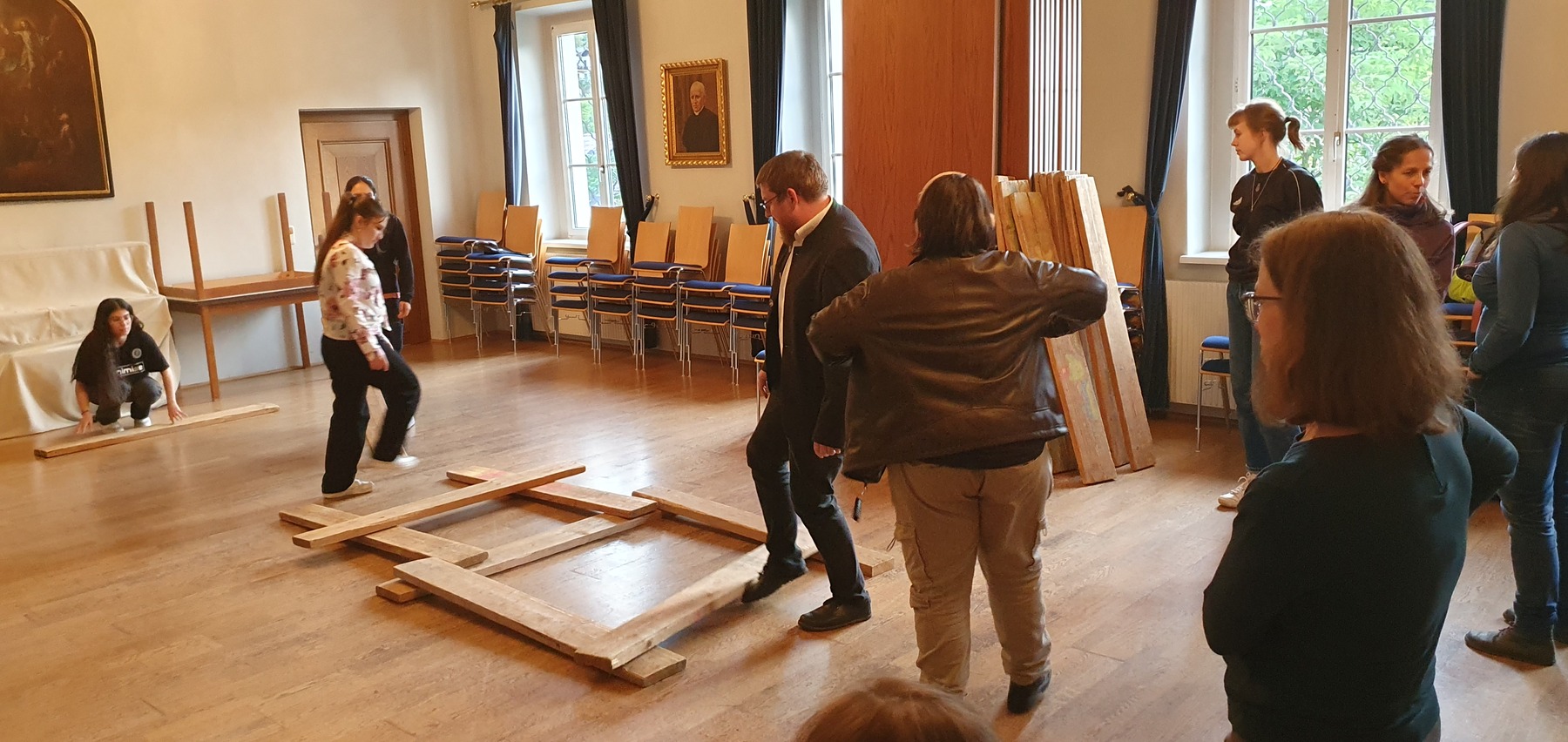 Im Anschluss wurde im Pfarrzentrum Weyer über das Gehörte und Erlebte reflektiert, bevor im Anschluss die Brücke der Solidarität errichtet wurde.