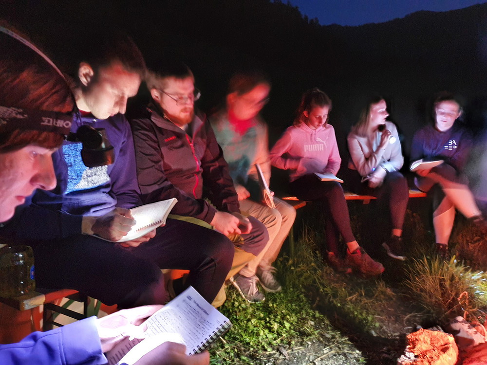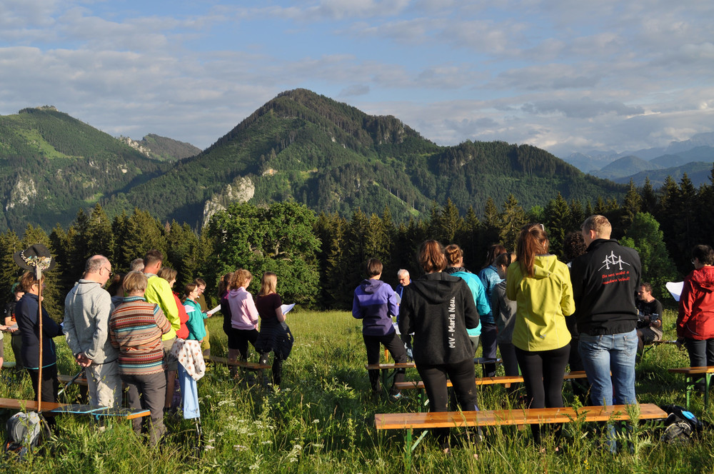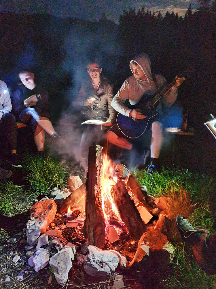 Für das Dekteam endete der Abend nach der Bergmesse allerdings noch nicht. Nach einer sehr guten, mit liebe gemachten Jause, verbrachte ein Teil des Teams den Abend noch gemütlich beim Lagerfeuer wo bis in die frühen Morgenstunde fröhlich aus dem Liederberg gesungen wurde. Die Chance so tolle Musiker dabei zu haben, wurde also besten genützt :-). Auch das gemeinsame Übernachten auf der Alm war ein Highlight, ohne Strom, Fließwasser usw. - aber genau so solls auch sein, solche Erlebnisse verbinden und stärken!
