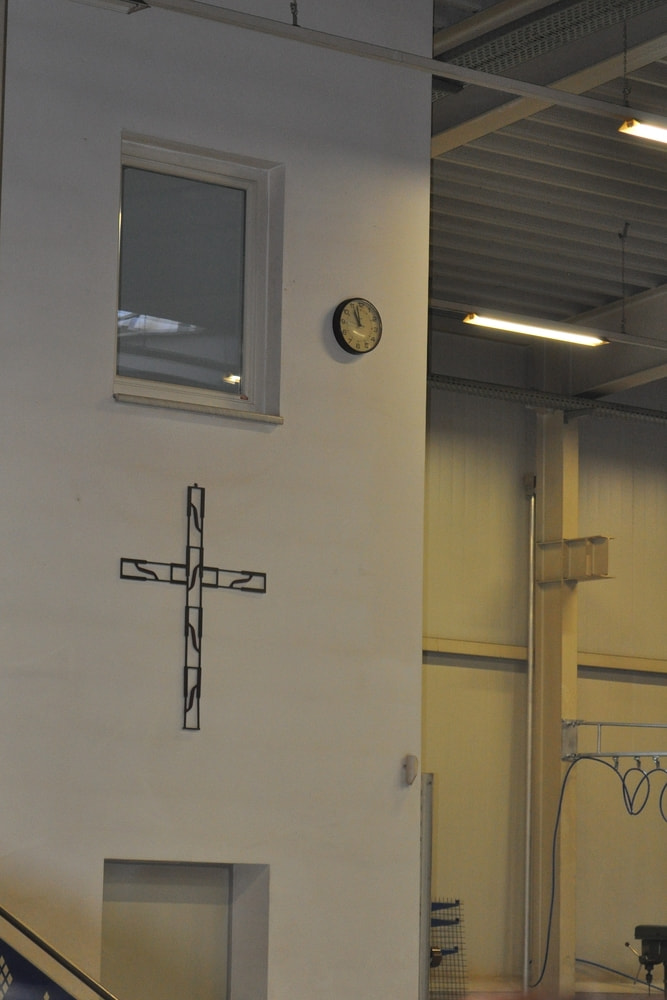 Im Anschluss an die Betriebsbesichtung gab es noch eine kleine Stärkung und Herwig Zöserl überreichte dem Bischof ein wunderschönes Metallkreuz als Erinnerung.