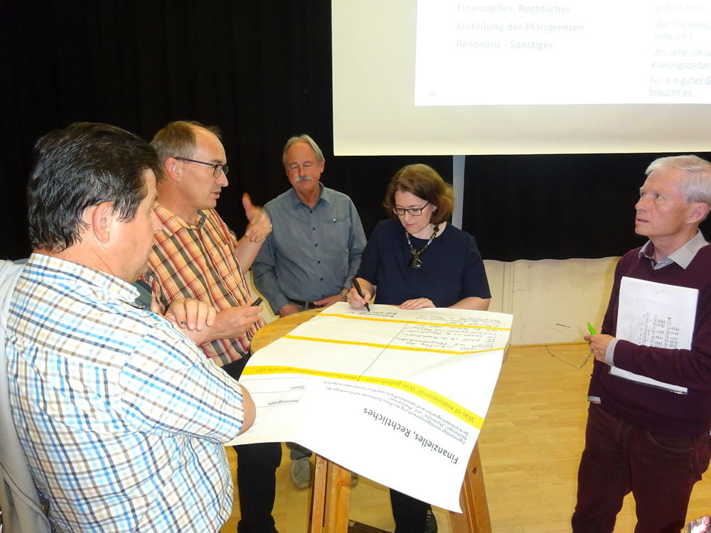 Fragen wurden zur Finanzverantwortung und der rechtlichen Absicherung der vorgeschlagenen „Pfarr-Gemeinden“ gestellt, ebenso die Sorge mitgeteilt und die Frage gestellt, wie genügend Personal gefunden werden kann…