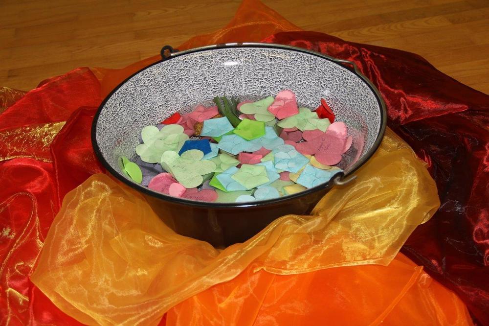 Martin Schachinger, Leiter der Stabsstelle Pfarrstruktur, informierte über die inhaltliche Schwerpunktsetzung von Spiritualität, Solidarität und Qualität, über Abläufe, Zeitpläne und die nächsten Schritte auf dem Weg. Er überreichte ein „Startpaket“ mit hilfreichen Unterlagen (2-Phasen-Modell der Umsetzung und die inhaltliche Ausrichtung). Ursula Einheller, Religionslehrerin in der Mittelschule Ternberg, bereicherte den Abend mit eigenen komponierten Liedern. Dass dieser Weg von Motivation, Zuversicht, Offenheit, Kreativität und gutem Willen geprägt ist, trotz aller offenen Fragen, wurde beim spirituellen Auftakt der Veranstaltung deutlich: Die von Brigitte Kieweg vorgetragene „Geschichte von der Steinsuppe“ bewegte die TeilnehmerInnen, ihr jeweils individuelles „Gewürz“ in Form einer beschriebenen Blume in einen Suppentopf zu legen – symbolisch dafür, dass jeder einzelne Beitrag zum Gelingen dieses Prozesses beiträgt und Kirche dadurch „schmackhaft“ wird.