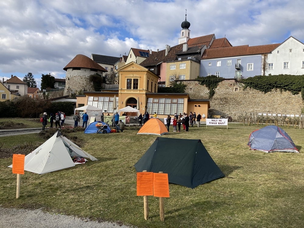 An den letzten beiden Wochenenden im Februar hatte eine Kooperation verschiedener kirchlicher und zivilgesellschaftlicher Organisationen für jeweils 24 Stunden ein Solidaritätscamp im Orangeriepark aufgestellt und sich damit der österreichweiten Bewegung „Wochenende für Moria“ angeschlossen. Zahlreiche sind gekommen um der Forderung zuzustimmen, Österreich möge zumindest 100 Familien mit Kindern aus den griechischen Flüchtlingslagern aufnehmen.