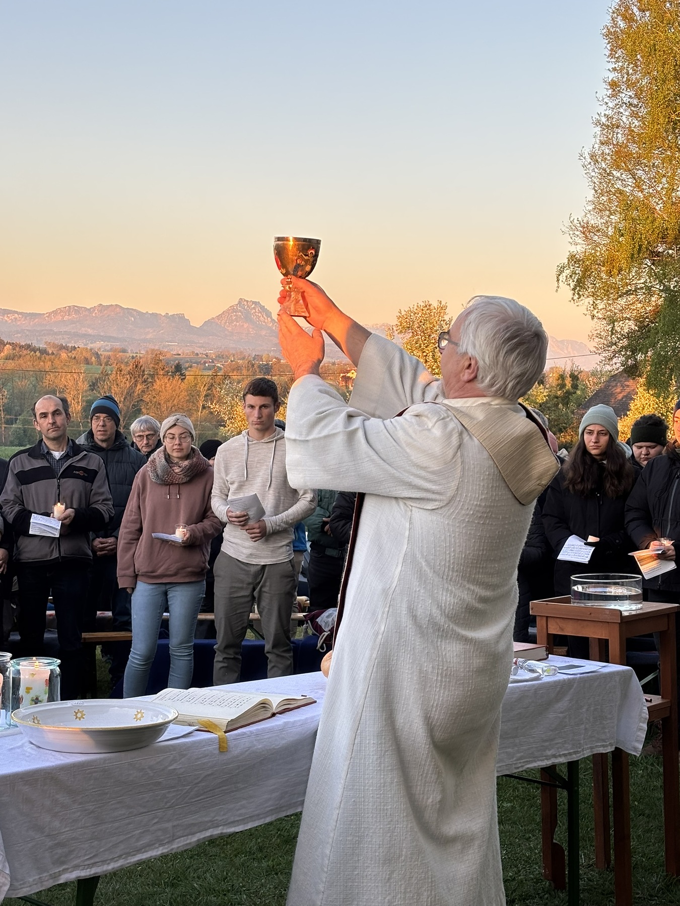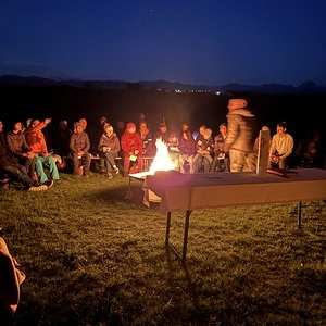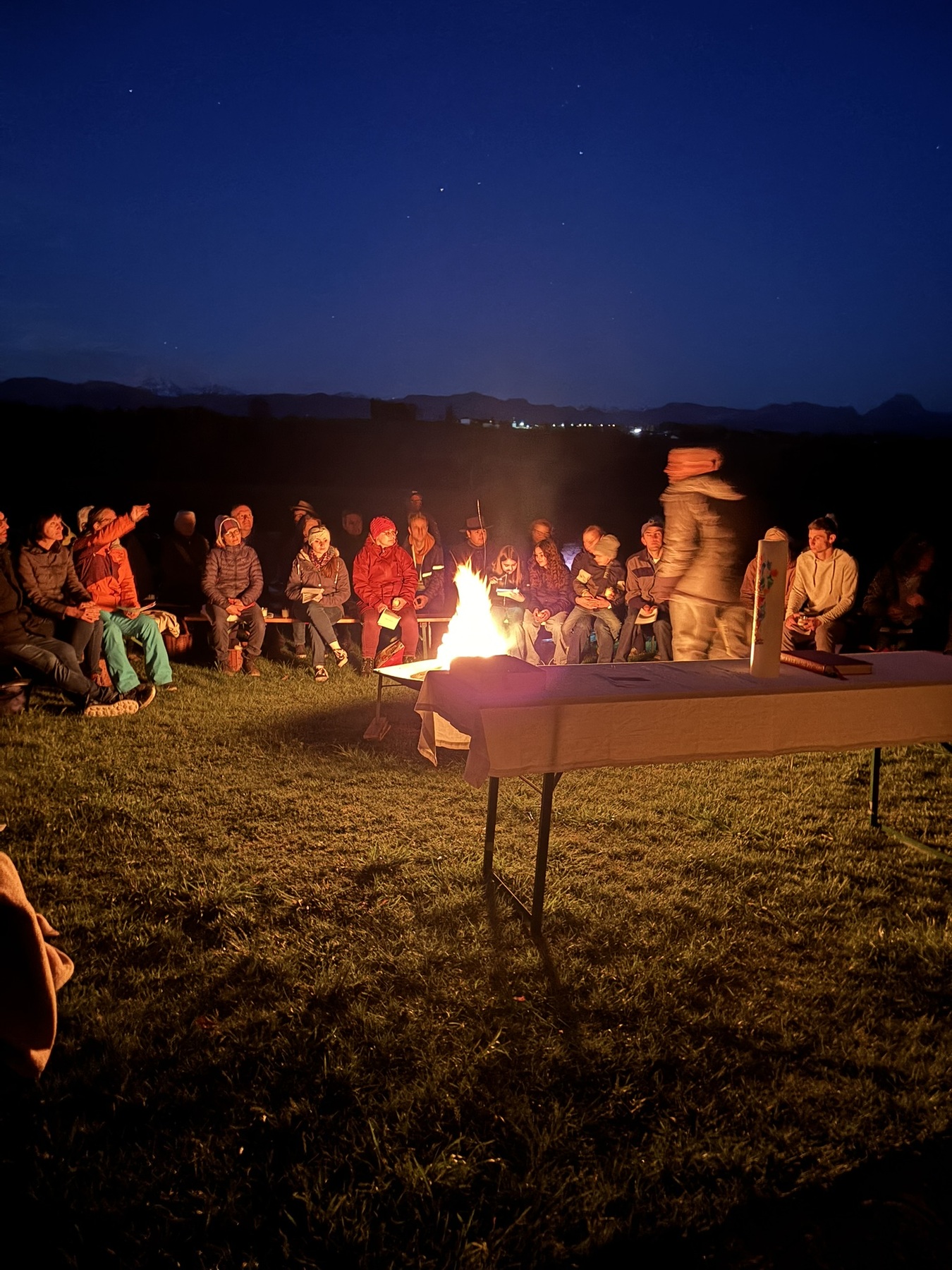 In traumhafter Morgenstimmung, begleitet vom leuchtenden Osterfeuer und einem wolkenlosen Himmel, wurde das Licht der Auferstehung lebendig. Die Lesungstexte wurden kreativ aufbereitet – nicht einfach vorgelesen, sondern in Szene gesetzt, mit Symbolen, Musik und stillen Momenten, die zum Nachdenken einluden.