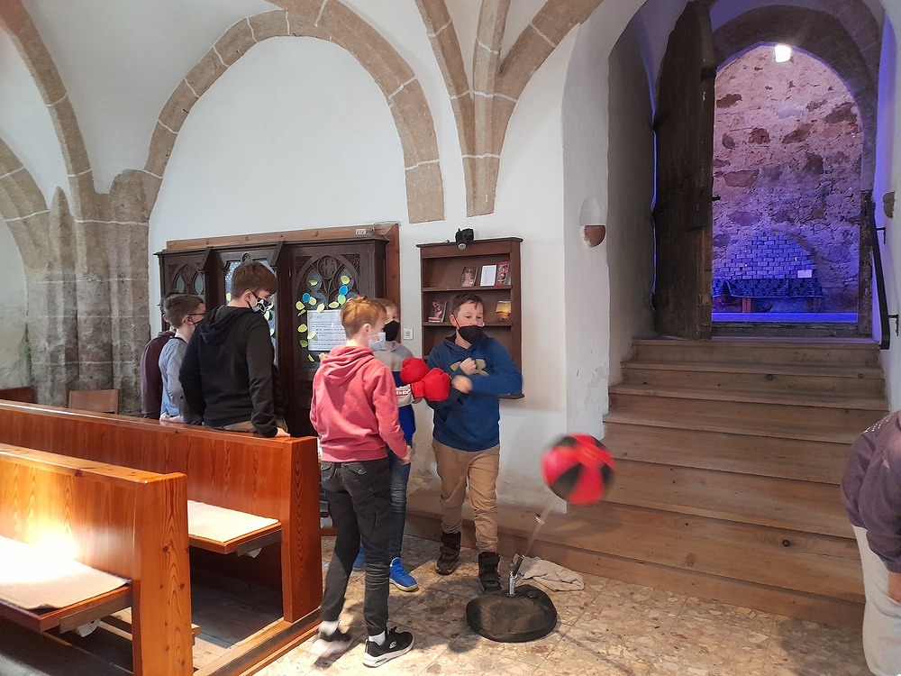 Die einzelnen Stationen wurden sehr intensiv von den Jugendlichen mit ihrer eigenen Persönlichkeit erforscht. Egal ob das eine „Nachricht an Gott“ war, die sie mittels Gasluftballon näher zu Gott steigen ließen, oder ihre „Wut im Bauch“, die sie an der Boxbirne auslassen konnten.