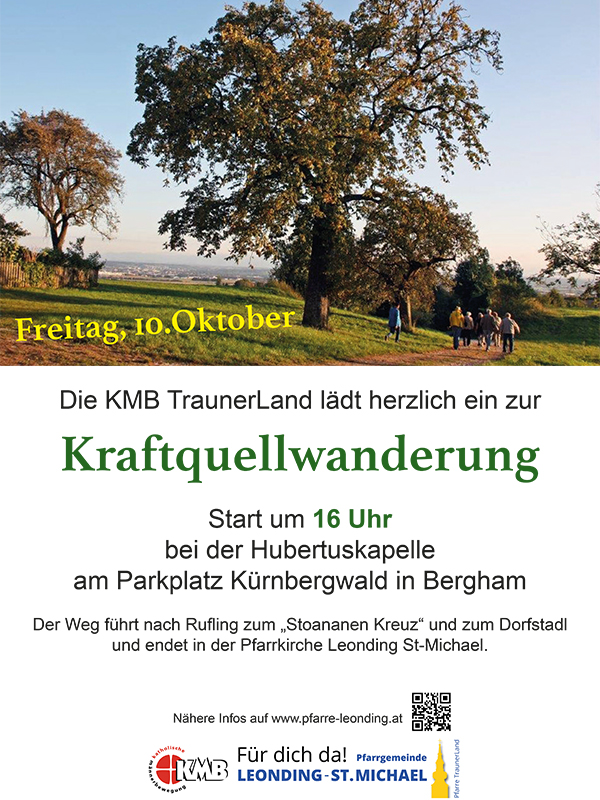 Organisation macht diesmal die Pfarrgemeinde Leonding-St. Michael unter der Leitung von Konrad Holoubek, Telefon 0664 4284061.