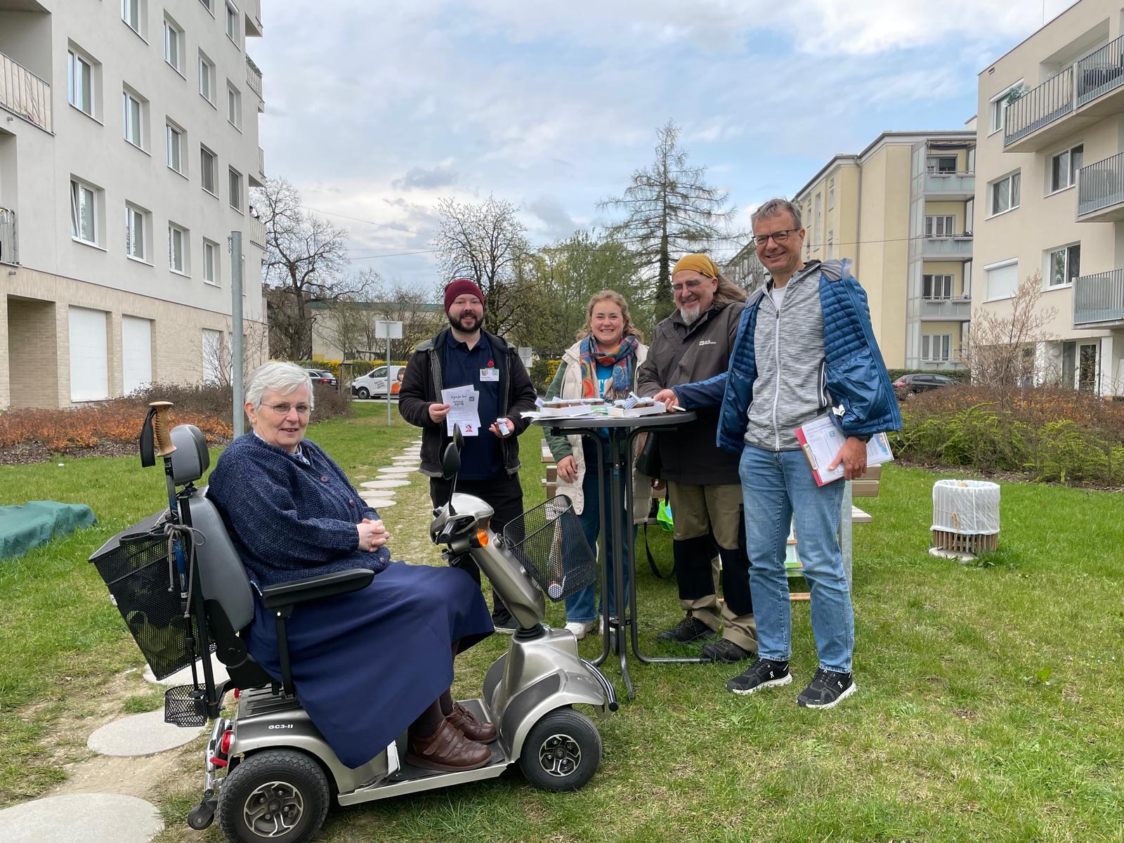 - Eine hinausgehende Kirche sein – „Gast sein im Stadtteil“: Das heißt zunächst die eigenen Räume zu verlassen und in den Kontakt und das Gespräch mit den Menschen auf der Straße, auf einer Parkbank, vor dem Lebensmittelgeschäft, etc. suchen. Sich absichtslos auf ein Gespräch einlassen und sehen: was können wir jetzt voneinander erfahren, wie füllen wir gemeinsam den kreierten Begegnungsraum? Wo kann ich den nächsten Schritt zum Leben ermöglichen. Aber auch das bewusste Teilnehmen an Veranstaltungen im Stadtteil, auch wenn wir nicht unmittelbar als Akteur:in angesprochen oder eingeladen wurden. Wie zum Beispiel bei der Eröffnung von neuen Wohnanlagen, bei einem Tag der offenen Tür in Firmen und Institutionen und auh bei gemeinschaftlichen Veranstaltungen.