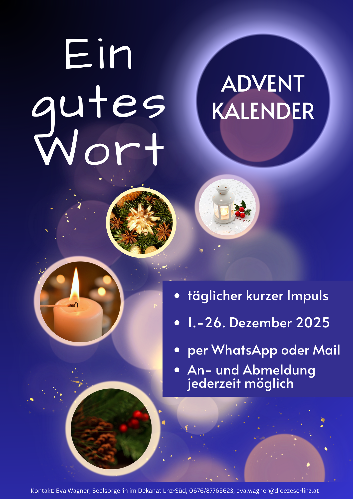 Ich willige ausdrücklich ein, dass meine personenbezogenen Daten (nämlich Vorname, Nachname, Firma/Organisation, E-Mail) zum Zweck der Zusendung des Newsletters des Dekanats Linz-Süd elektronisch gespeichert und verarbeitet werden. Diese Zustimmung kann ich jederzeit per Brief an: Schörgenhubstraße 39, 4030 Linz, telefonisch unter: 0676/8776-6190 oder per E-Mail an pfarre.linz-sued@dioezese-linz.at widerrufen.