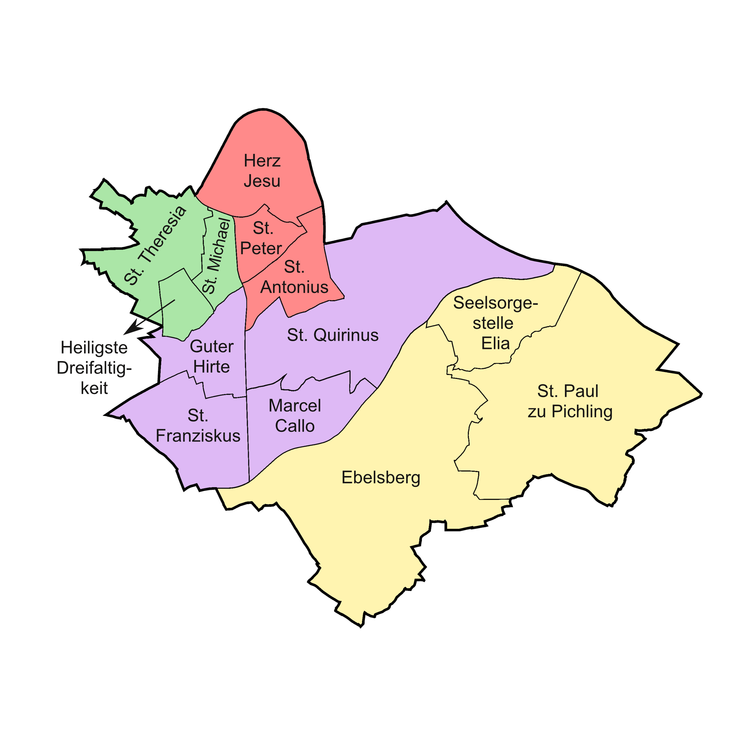 Die Zusammenarbeit in Linz-Süd wird aufgrund der großen Anzahl von 13 Pfarrgemeinden noch einmal unterteilt und Schwerpunkt mäßig in einem ersten Schritt in den 4 Pastoralräumen verstärkt.