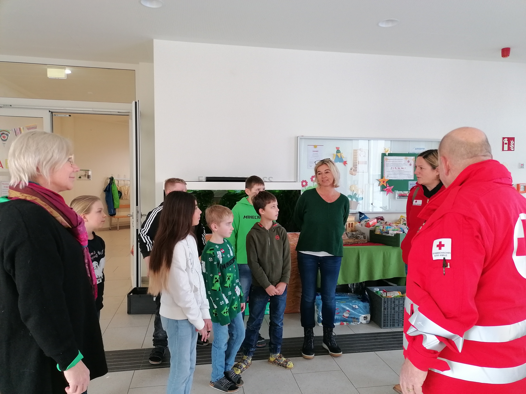 Die röm.-kath. Religionslehrerin Silvia Klaushofer, BEd. organisierte für die Adventzeit einen besonderen Adventkalender für die Schüler:innen der VS Mattighofen, einen UMGEKEHRTEN ADVENTKALENDER. Anstatt jeden Tag ein Türchen zu öffnen und sich etwas zu nehmen, durften die Kinder jeden Tag etwas bringen und dazulegen. Im Foyer der Schule wurde eine Krippe aufgebaut. War am 01. Dezember noch alles leer, so wurden von Tag zu Tag mehr Geschenke für den Sozialmarkt Mattighofen gesammelt. Von Nudeln, Reis, Thunfisch und Bohnen, bishin zu Hygieneartikel wie Zahnpasta und Klopapier stapelten sich die Gaben, welche vom Leiter des Sozialmarktes Herrn Georg Kaser mit seinem Team abgeholt wurden. Die Kinder halfen beim Verladen der Artikel fleißig mit.