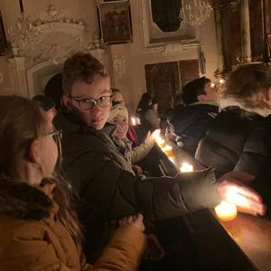 Das Gebet zur Abendstunde wurde von den Firmlingen selber mitgestaltet. Martina spielte zusammen mit ihren Schülerinnen auf der Gitarre und Christoph gestaltete zusammen mit seinen beiden Trompetenschüler:innen das Abendlob musikalisch mit. Die Firmlinge der Pfarren Kirchberg und Schneegattern lasen besinnliche Texte.
