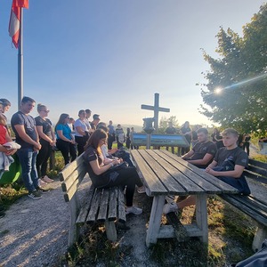 Am 01. Oktober pilgerten über 50 Landjugendliche aus zehn Landjugendgruppen nach Kirchberg bei Mattighofen. Die Landjugend traf sich zur Sternwallfahrt. Der Sonnenuntergang am Kirchberger Gaisberg bescherte den Wallfahrer:innen eine wunderschöne Kulisse zur Besinnung. Das am Foto zu sehende Kreuz hat die Landjugend Kirchberg aus einem Baum gefertigt und als Gipfelkreuz aufgestellt. Nach der Besinnung auf dem Hügel wurde zur Wortgottesfeier in die Pfarrkirche eingeladen. Die musikalische Gestaltung mit Querflöte und Gesang machte die Landjugend Kirchberg. Durch die zeitgemäße und passend zur jungen Feiergemeinde gestaltete Liturgie könnten die Mitfeiernden das schöne und ereignisreiche Landjugend-Jahr ausklingen lassen. Nach der gemeinsamen Liturgie kehrten alle gemütlich beim Wirt z´Siegertshaft ein.
