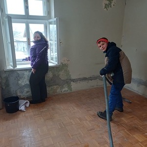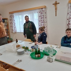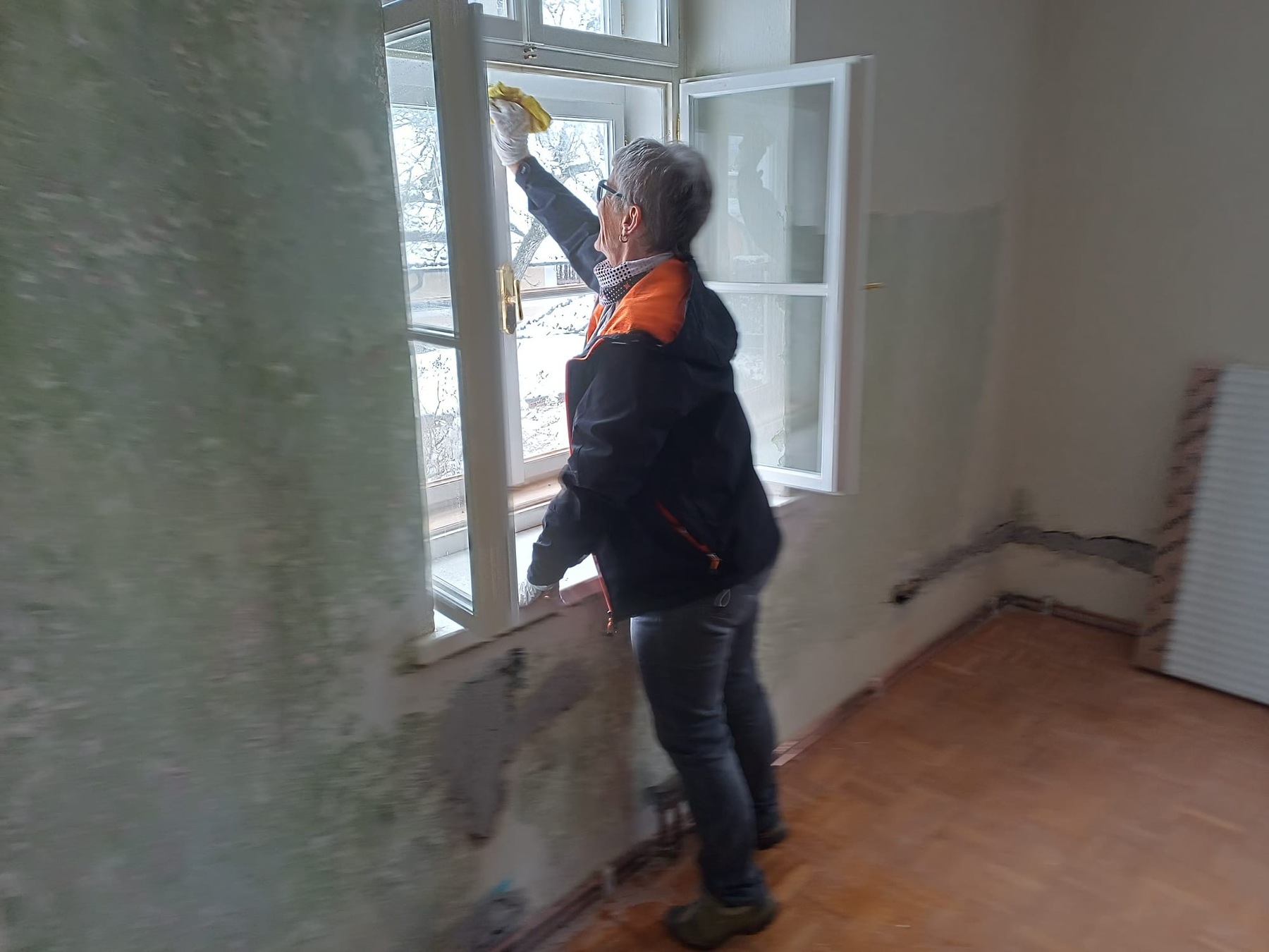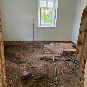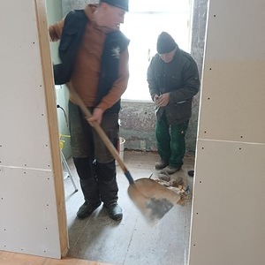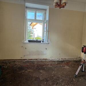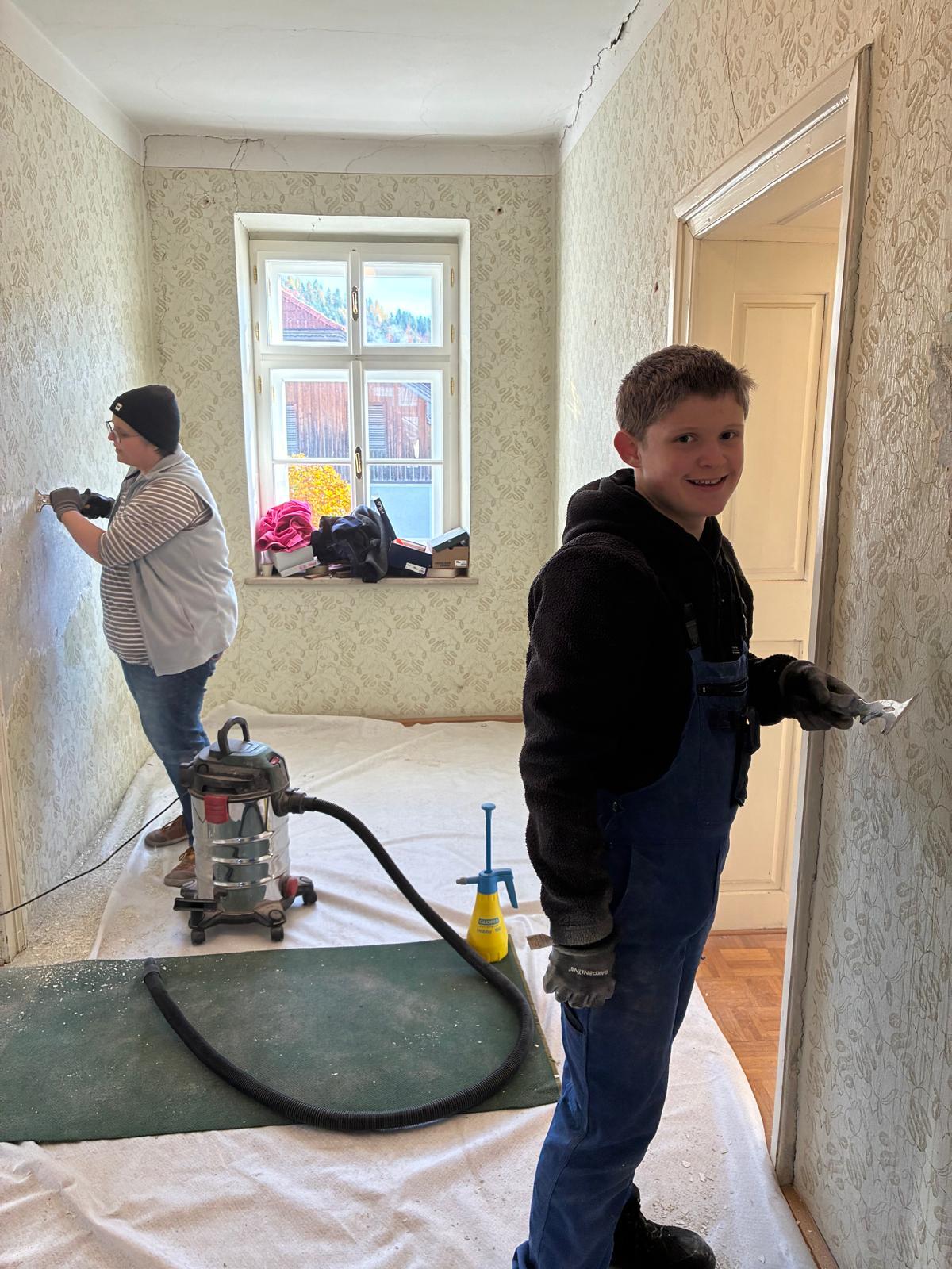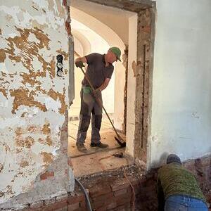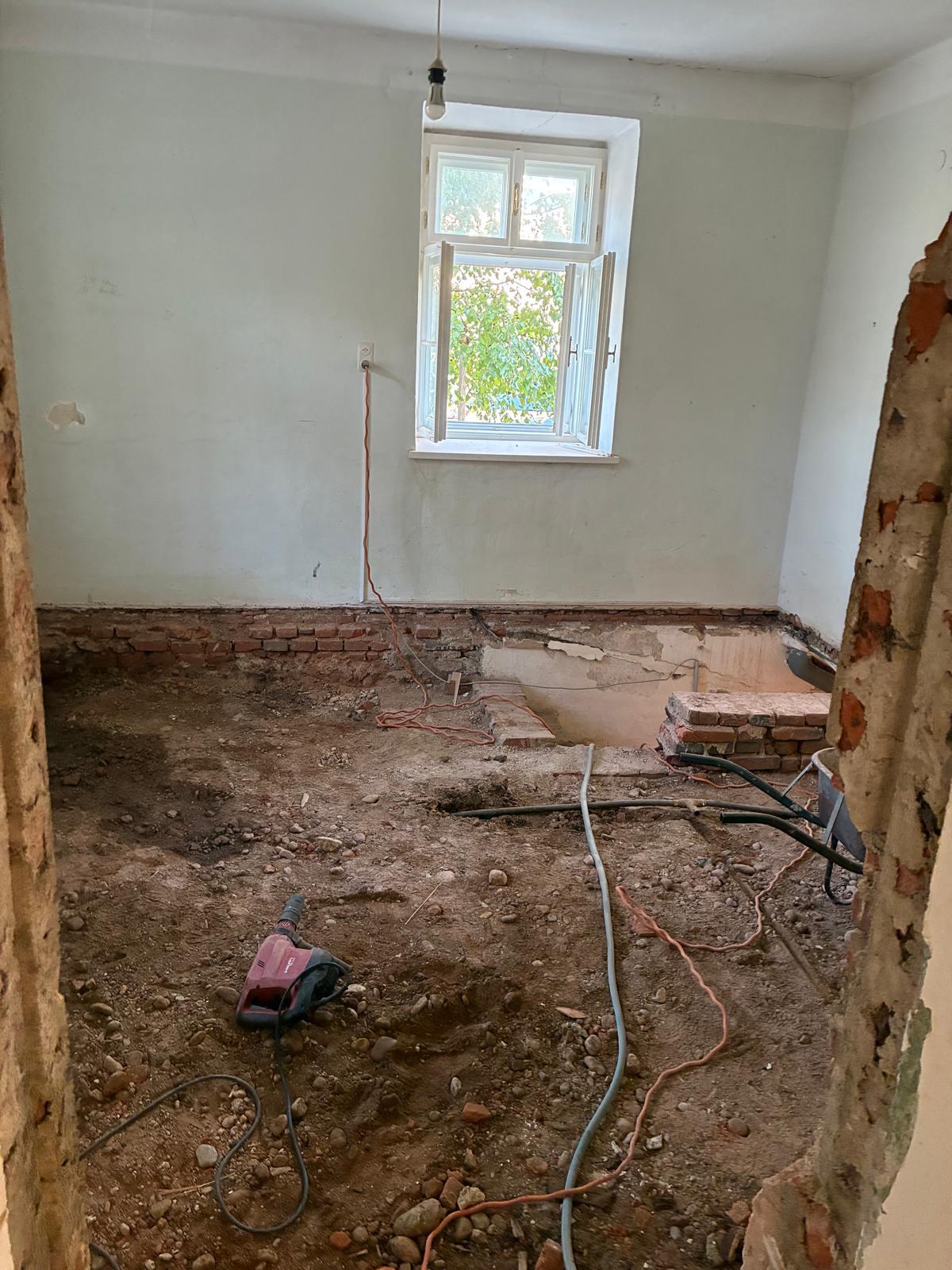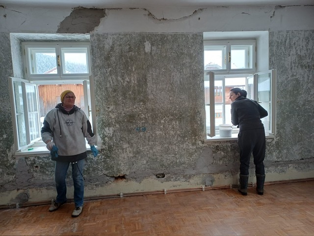 Dank dem unermüdlichen Einsatz der Freiwilligen in der Pfarrteilgemeinde Munderfing wurde der Pfarrhof bereits vollständig geräumt, die Böden entfernt, Mauern durchbrochen, Wände von einigen Schichten befreit und Stemmarbeiten für neue Leitung erledigt.