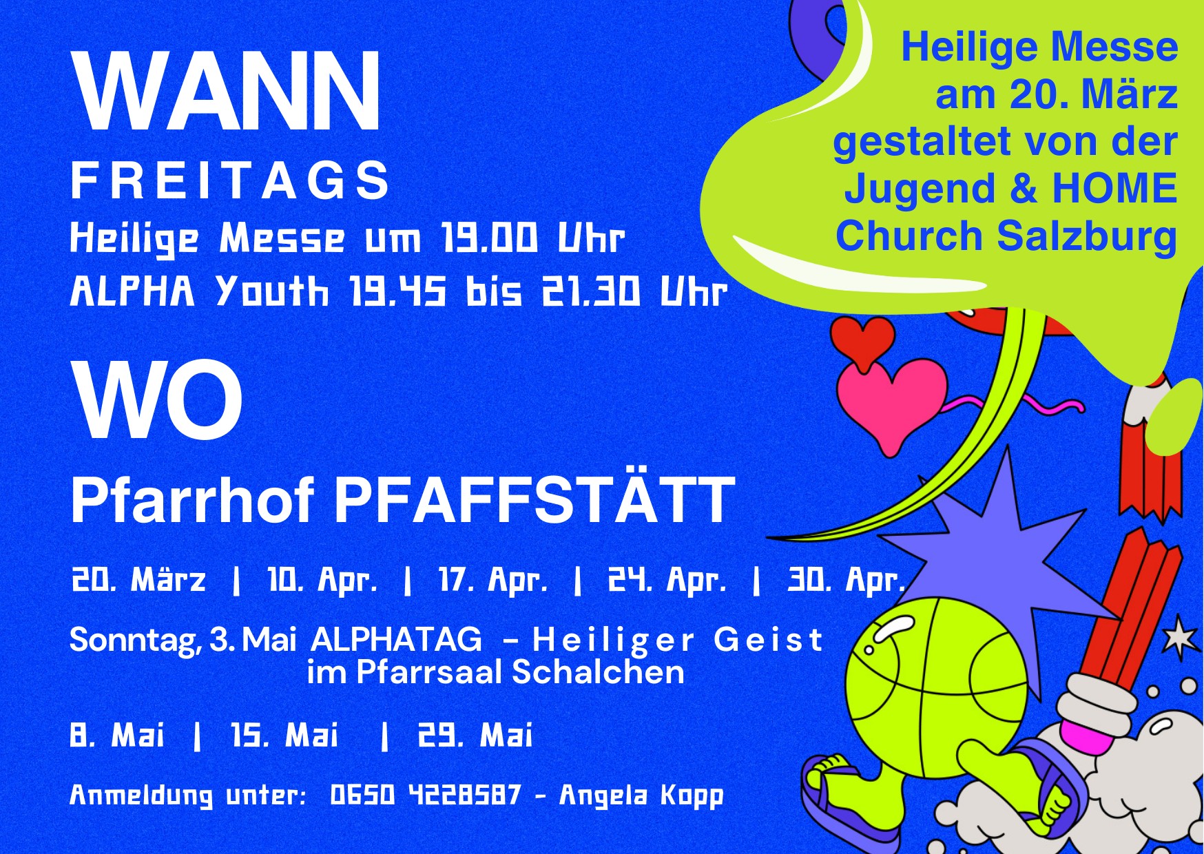 Wir starten am 20.3.2026 um 19.00 Uhr mit einer Jugendmesse mit Lobpreis gestaltet von jungen Leuten der HOME Church Salzburg.