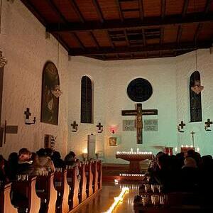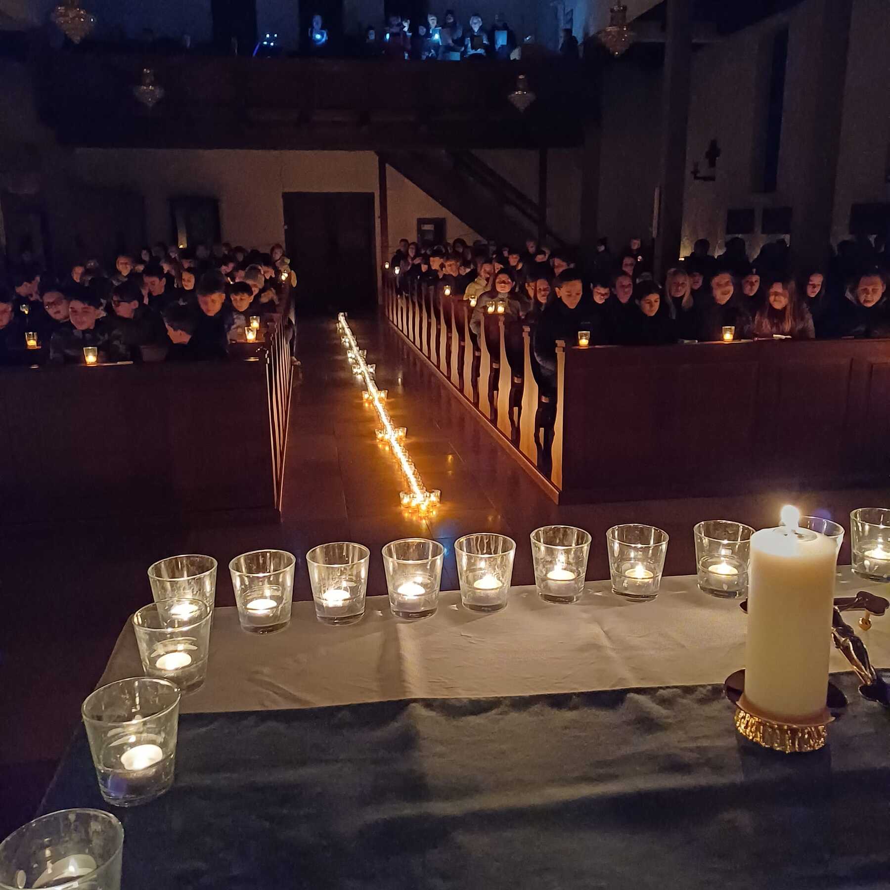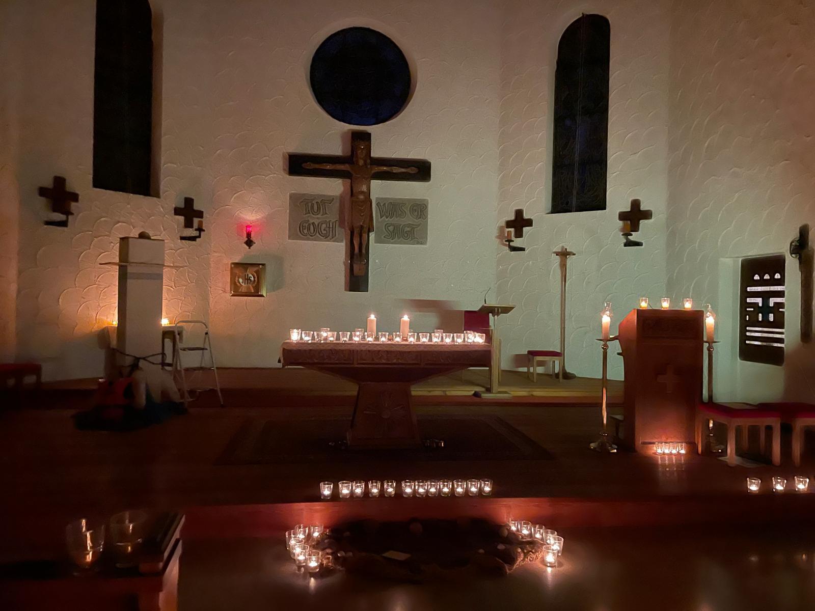 Manchmal hilft es ruhig zu werden, dem Chor zu lauschen, die Kerzenlichtbilder aufzunehmen, in sich hineinzuhören: Gott ist da, auch im Sturm.