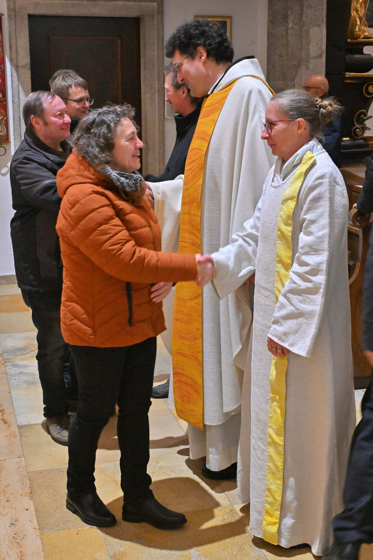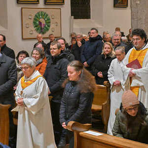 Nach der Predigt von Bischof Manfred Scheuer bekannten Pfarrer P. Franz Ackerl, Pastoralvorständin Maria Pesendorfer und Verwaltungsvorstand Markus Johannes Hager ihren Glauben. Nun erklärte Bischof Scheuer die Rechtmäßigkeit des Amtsantritts. Vertreter:innen der Pfarrgemeinden und pastoralen Orte drückten dem Pfarrer und den beiden Pfarrvorständ:innen per Handschlag ihre Verbundenheit und ihre Bereitschaft zur Zusammenarbeit zum Wohl der ganzen Pfarre aus. Abschließend segnete Bischof Scheuer die Neubestellten für ihren Dienst.