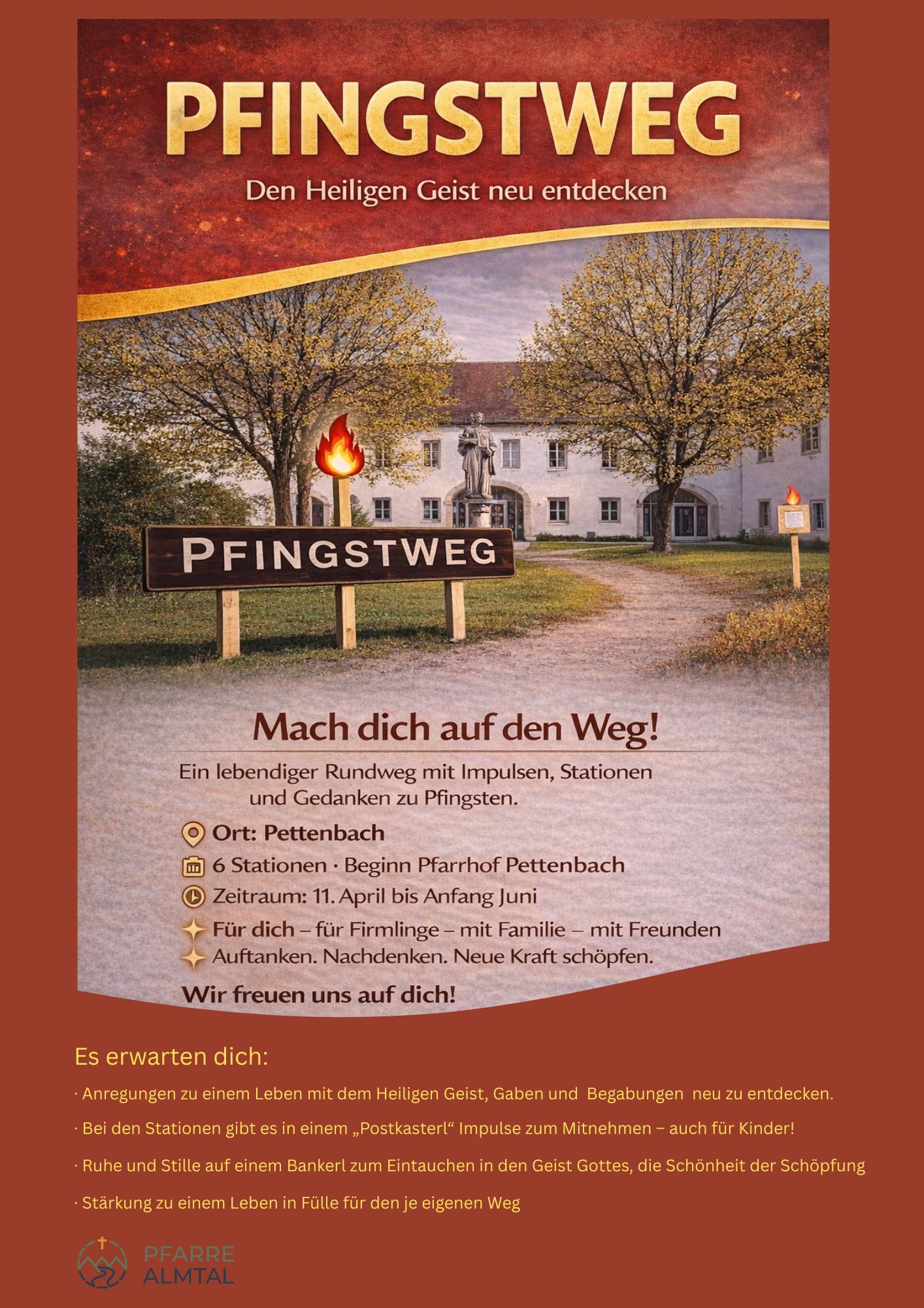 Wir wünschen Dir begeisternde und Mut-machende Eindrücke auf diesem Pfingstweg. PGR Pettenbach