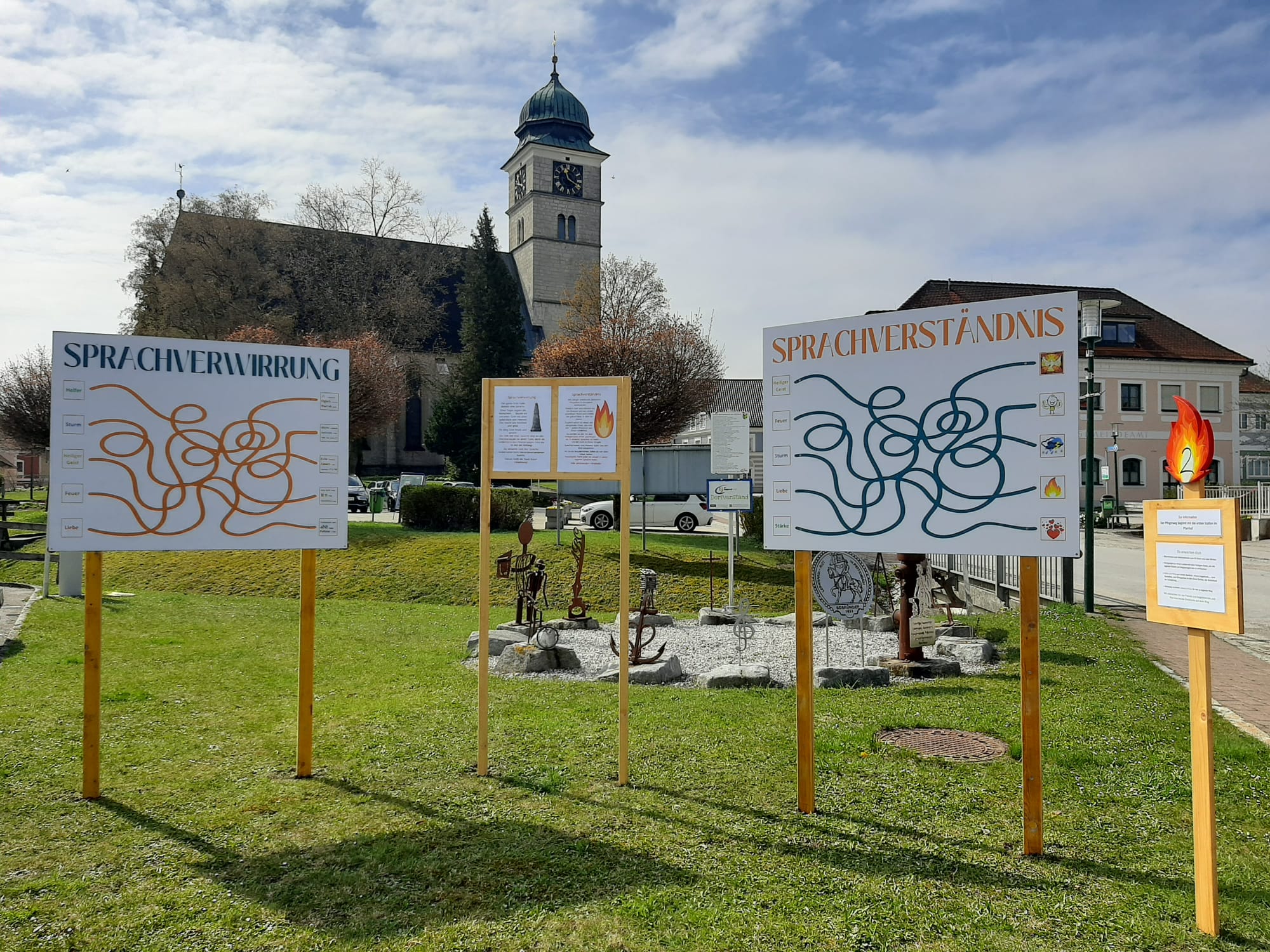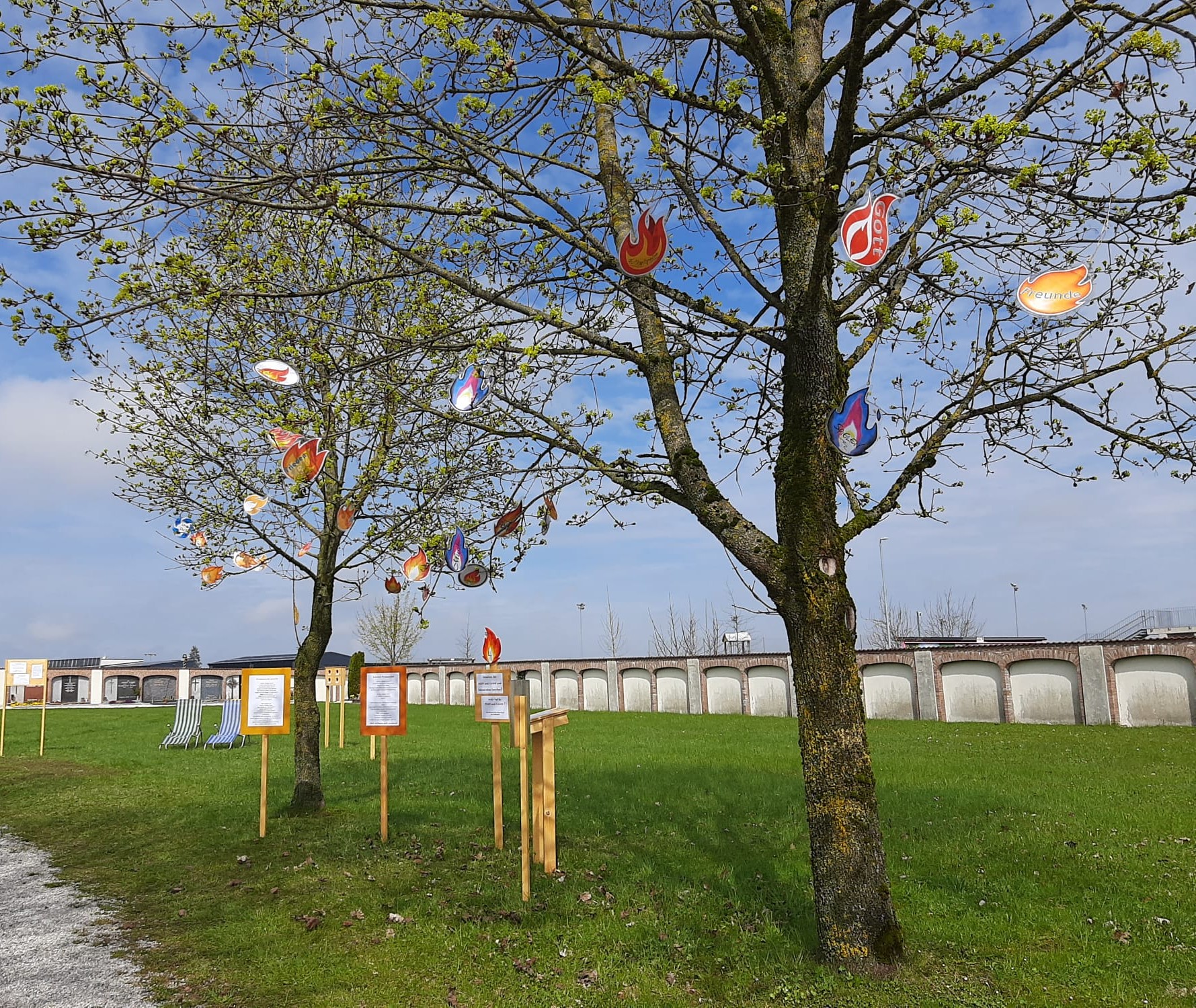 Der Weg: ist in 6 Stationen aufgeteilt und beginnt im Pfarrhof Pettenbach, geht weiter über den Parkplatz hin zum hinteren Teil des Friedhofes, von dort aus dann über den vorderen Teil des Friedhofes bis zur 6. Station am Nordportal der Kirche