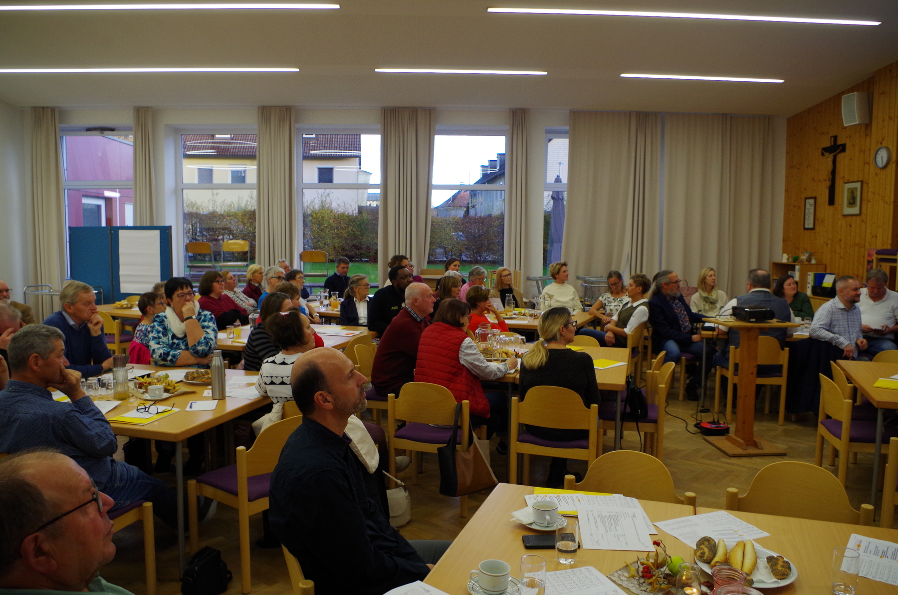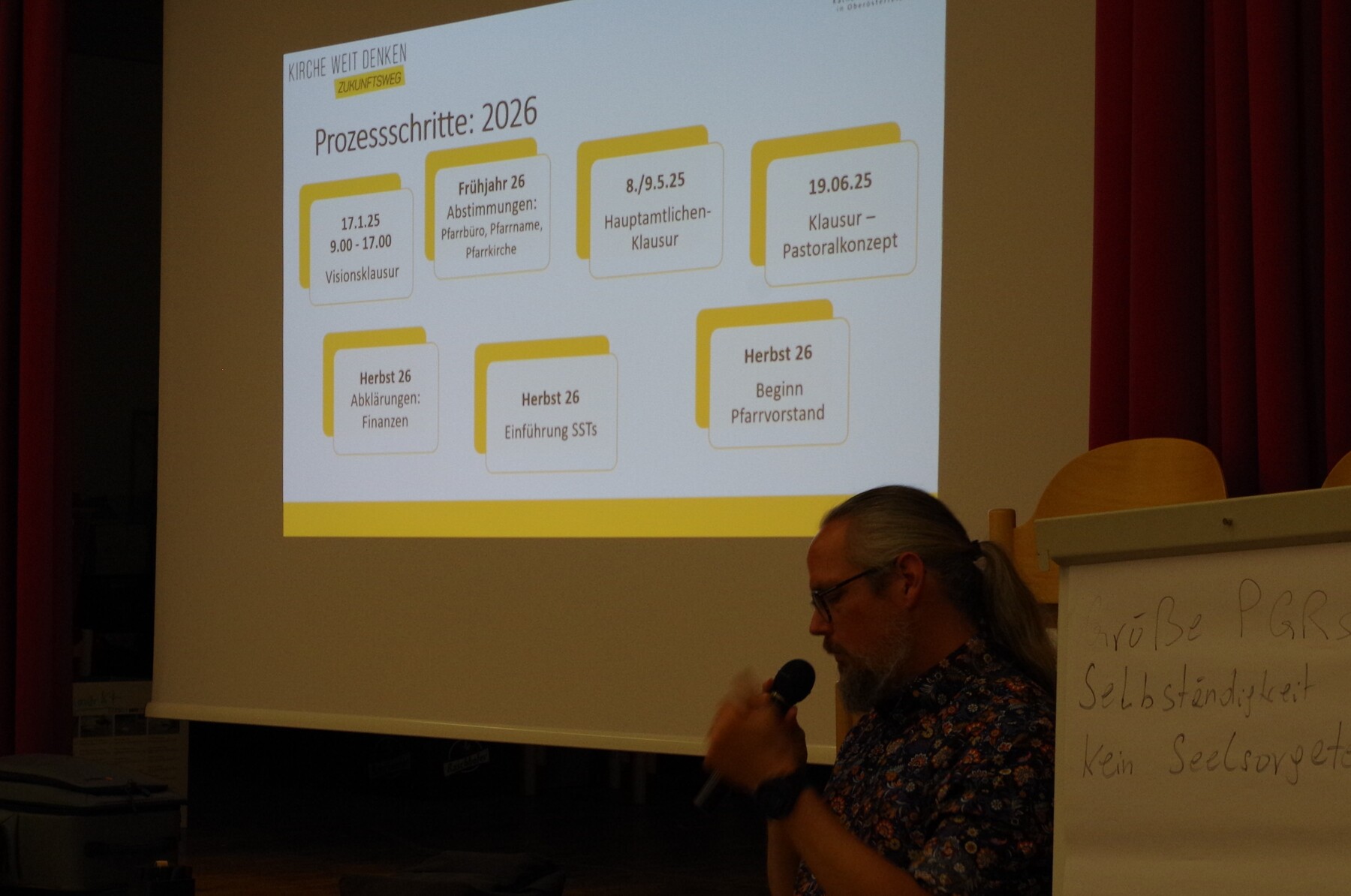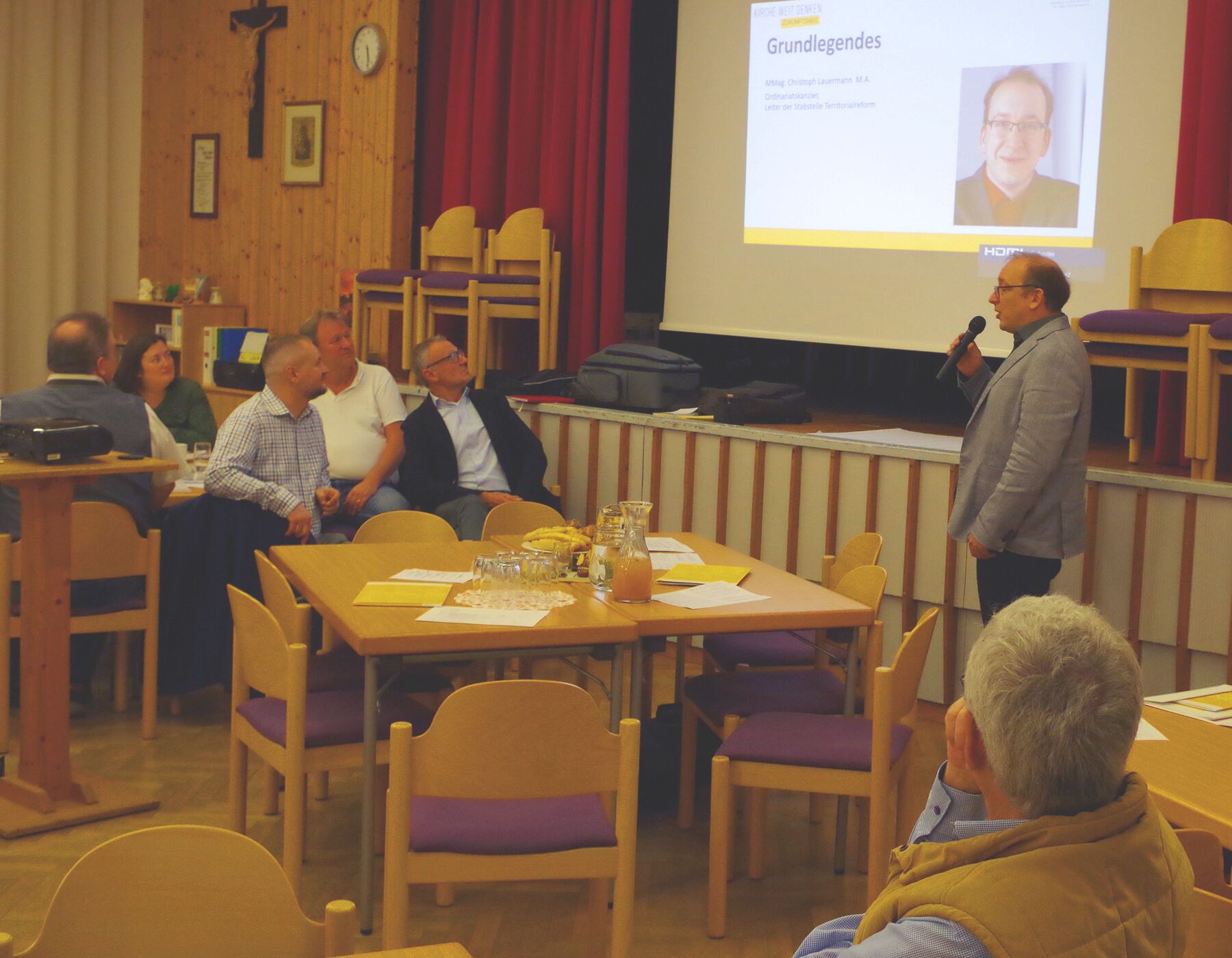 Die Auftaktveranstaltung war geprägt von viel Interesse, regem Austausch und einem guten Miteinander. Die Mitglieder des Kernteams stellten sich vor, die beiden Prozessbegleiter Johannes Mairinger und Heinrich Brandstetter informierten über den Zeitplan und nächste Schritte. In Kleingruppen wurden Chancen und Herausforderungen des Veränderungsprozesses diskutiert und in den Blick genommen, was die einzelnen Pfarren einbringen können. Als Chance wurde die bessere Vernetzung und Zusammenarbeit gesehen, bei der von den Stärken der anderen Pfarren profitiert werden kann. Gleichzeitig besteht die Sorge, dass die eigene pfarrliche Identität verloren gehen könnte. Als Herausforderungen wurden unter anderem die Jugendarbeit und die große Verantwortung von Ehrenamtlichen in den Seelsorgeteams genannt.