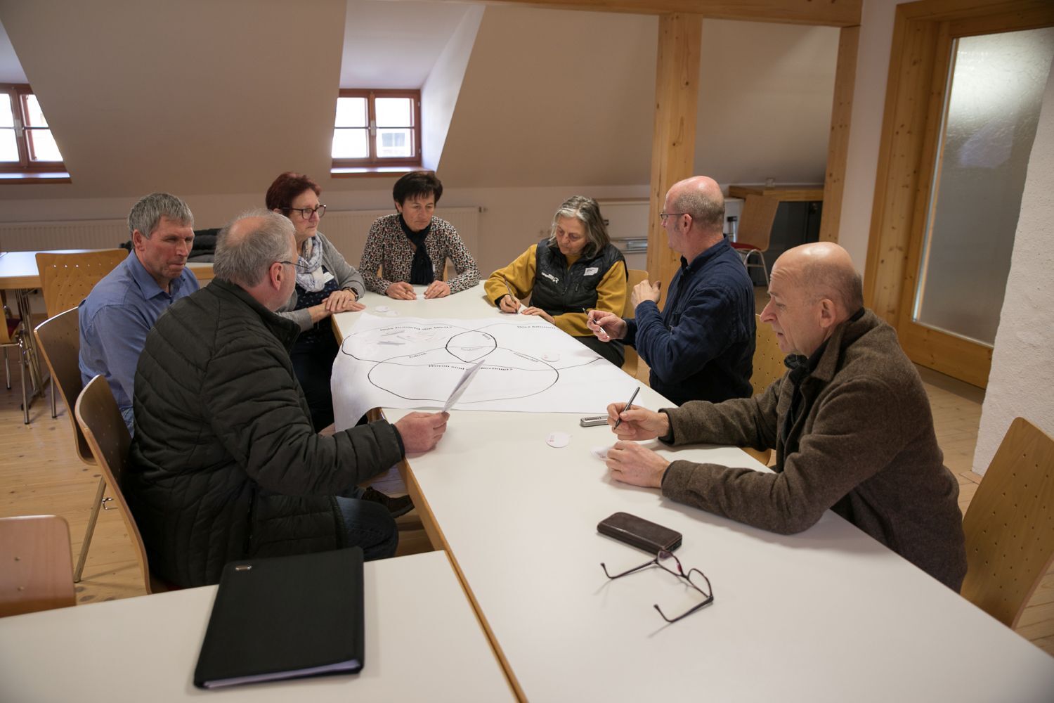 In einem kreativen und intensiven Arbeitsprozess näherten sich die Gruppen anschließend der Frage nach Sinn und Auftrag der zukünftigen Pfarre. Ausgangspunkt waren Fragen wie: Was braucht die Welt? Was können wir als Kirche gut? Wovon sind wir überzeugt? Ziel war es, einen Satz zu formulieren, der den Auftrag der Kirche in unserer Region ausdrückt.