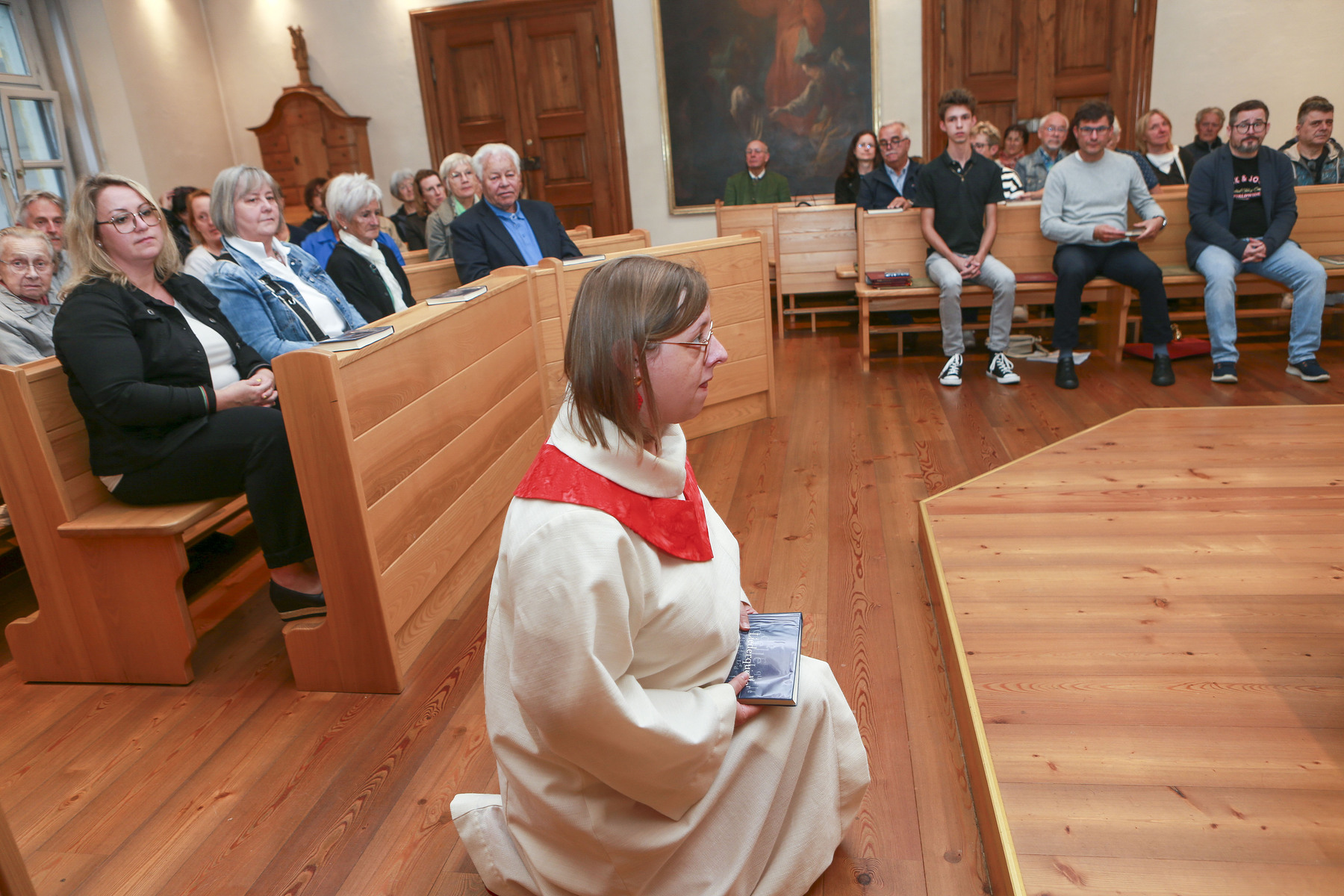 Unter dem Titel „Lydia, Purpurhändlerin in Philippi“ lud Dekanatsassistentin Patrizia Wohlmacher am Sonntag 03. August 2025 um 19:00 Uhr zu einem Gottesdienst ein, der wetterbedingt nicht im Herrengarten sondern in der Hauskapelle des Stiftes Reichersberg stattfand. Die Mitfeiernden lernten dabei eine interessante Frau des Neuen Testaments näher kennen - Lydia, die erste Christin Europas. Musikalisch gestaltet wurde der Gottesdienst vom G’mischten Satz unter der Leitung von Andreas Zechmeister. Ein Szenenspiel stellte die biblische Erzählung aus der Apoostelgeschichte (Apg 16,11-15), in der Lydia zum ersten Mal Paulus und seinen Begleitern Silas und Timothius begegnete dar - gesprochen von Susanne Rammersdorfer, Markus Wiesbauer, Martin Unfried und Alexander Lunglmeir.