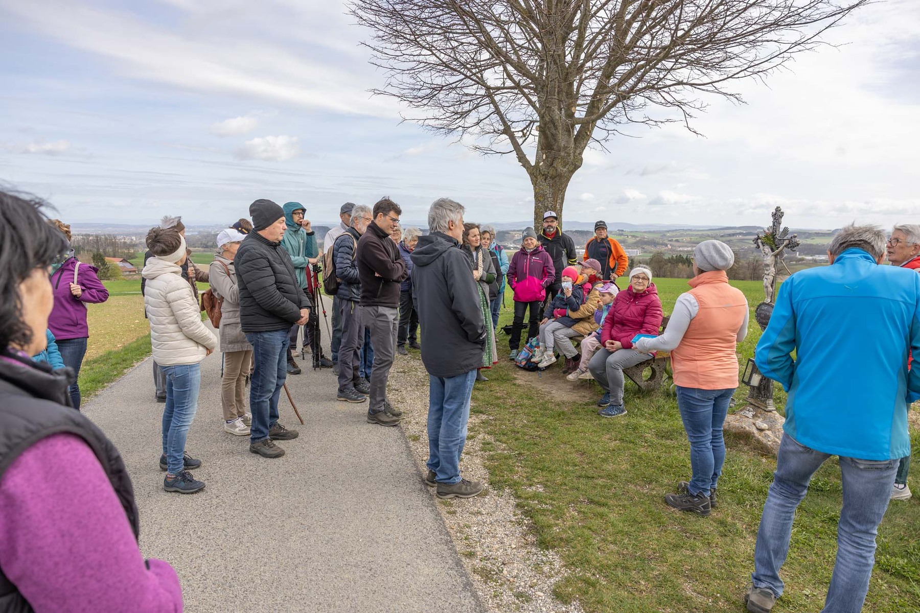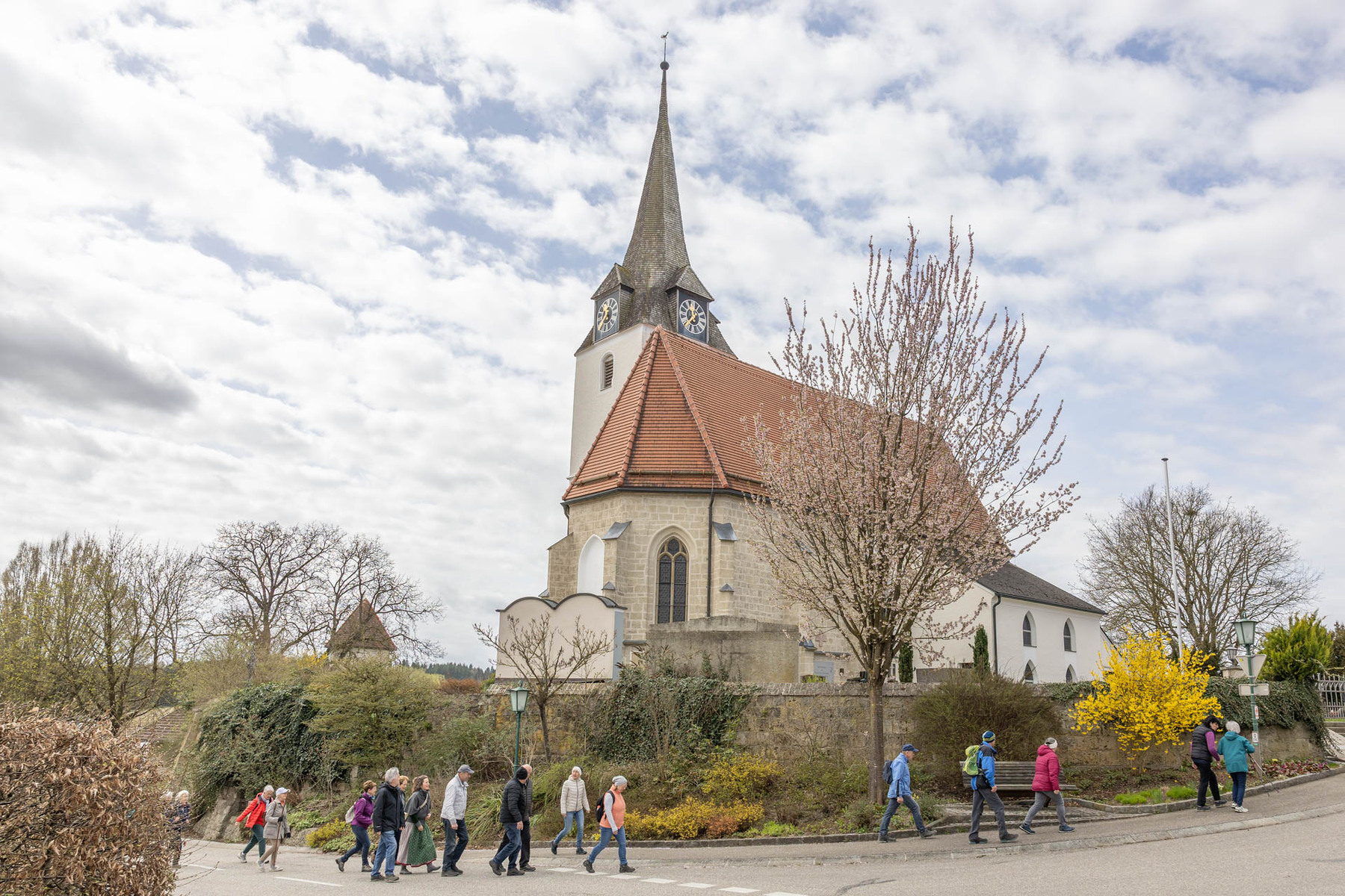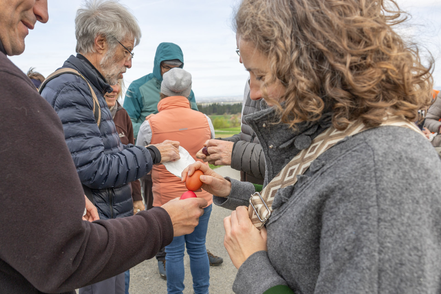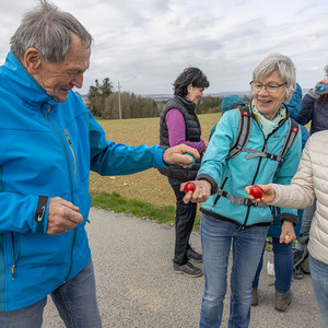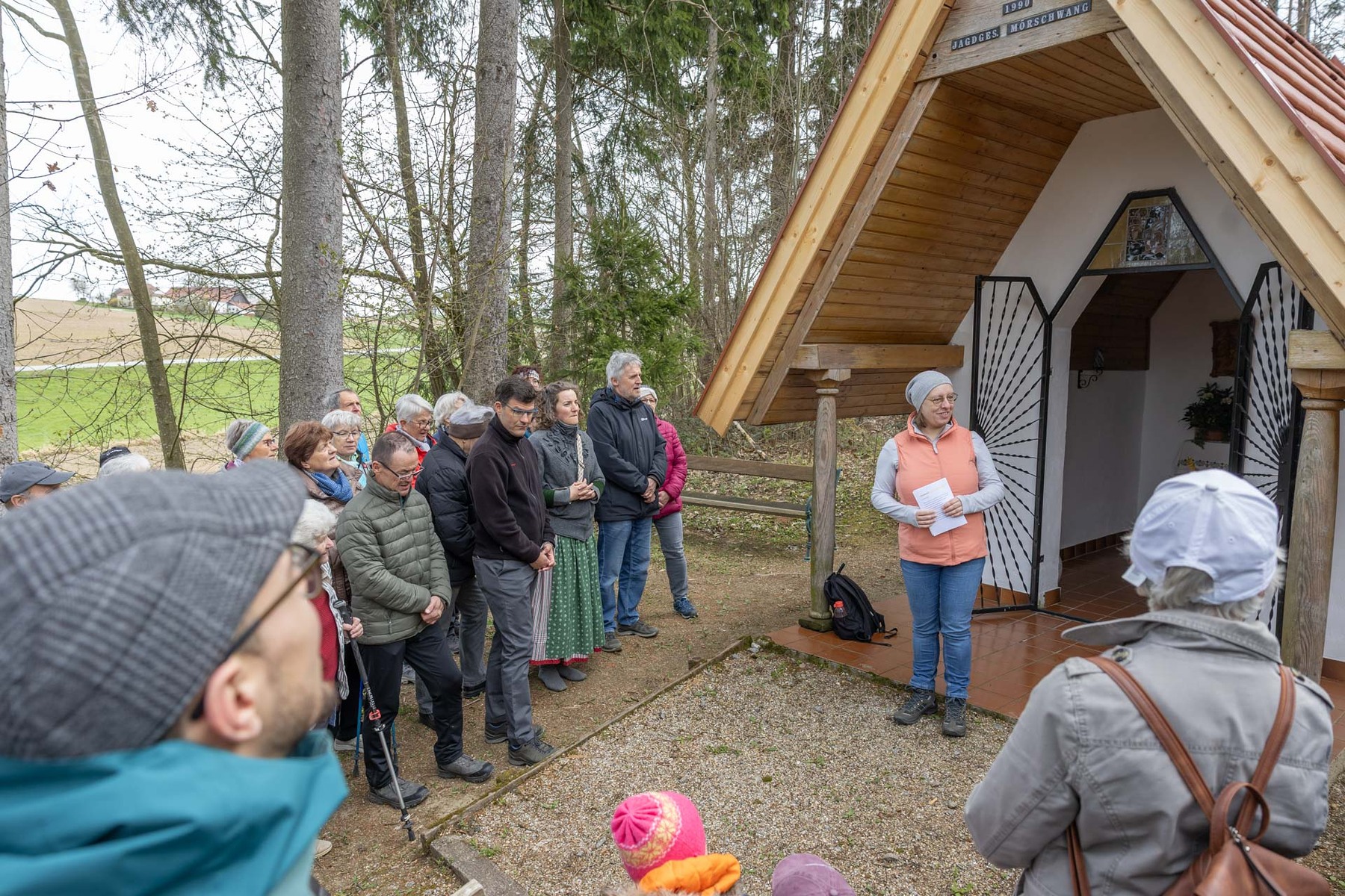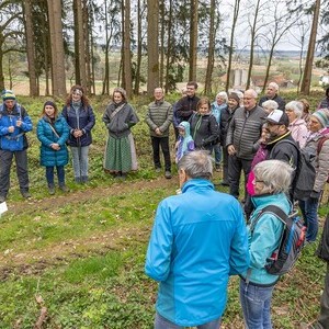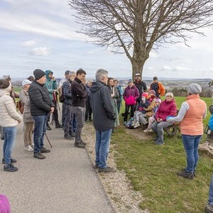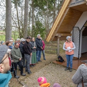 Im Anschluss machten sich die Teilnehmer:innen gemeinsam auf den Weg, um diese Erfahrung des Unterwegsseins auch praktisch zu erleben. Gespräche, Besinnung und gemeinsames Gehen stärkten die Gemeinschaft ebenso wie das Eierpecken. So wurde nach den Stationen beim Familienplatzl, der Waldlichtung, der Jägerkapelle und dem Christophkreuz der Ausgangspunkt - die Mörschwanger Pfarrkirche - wieder erreicht.