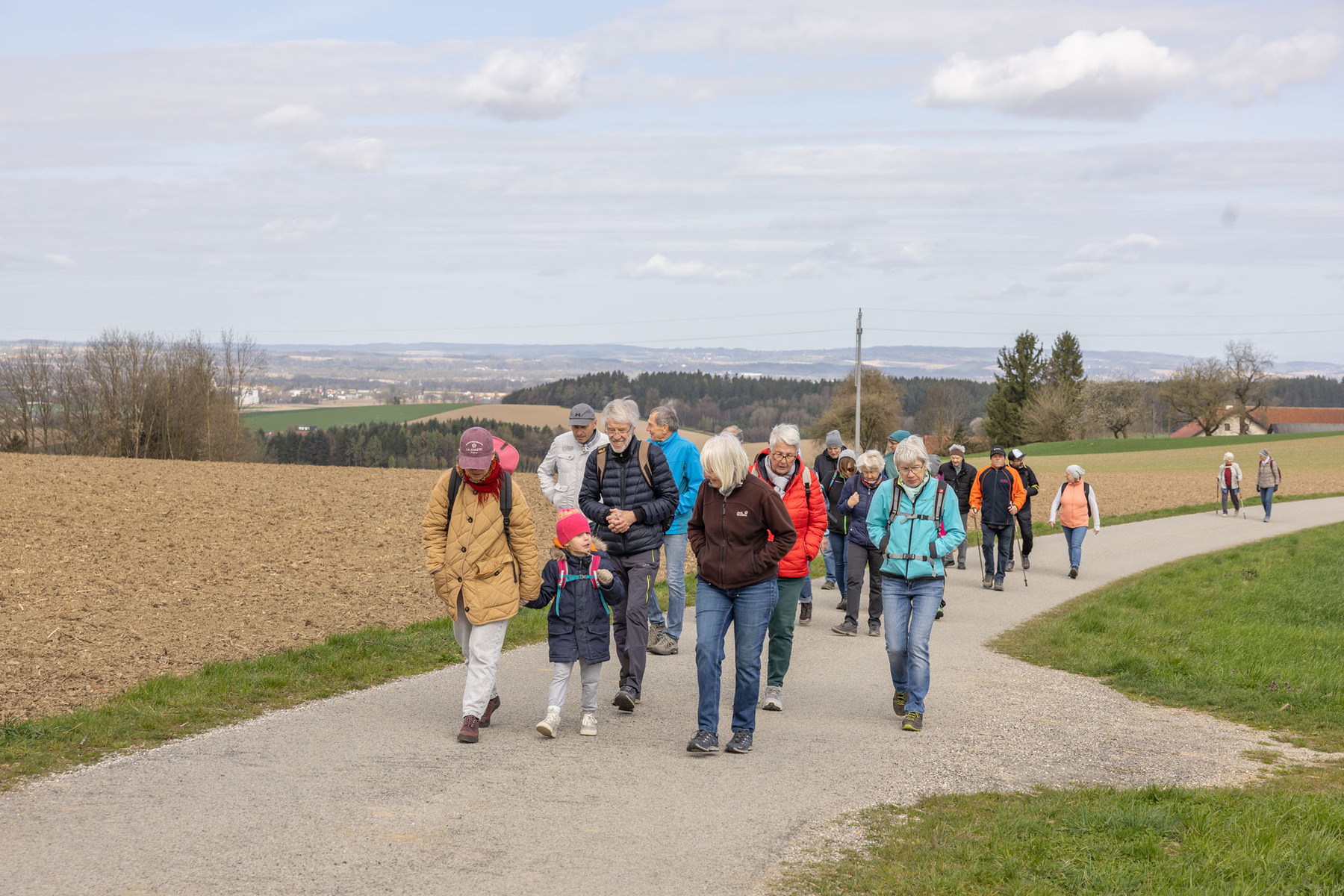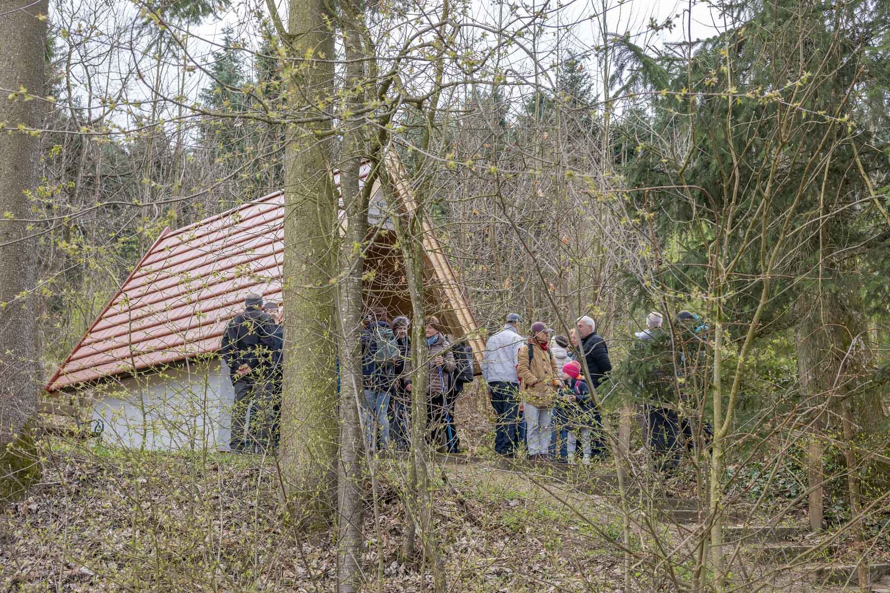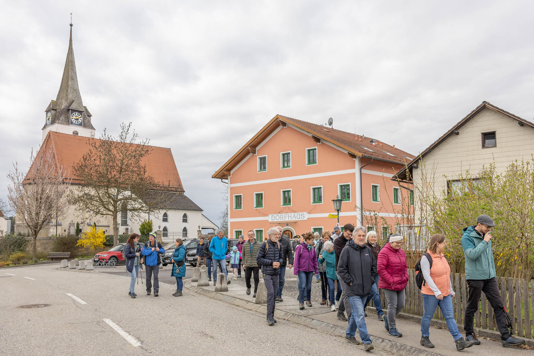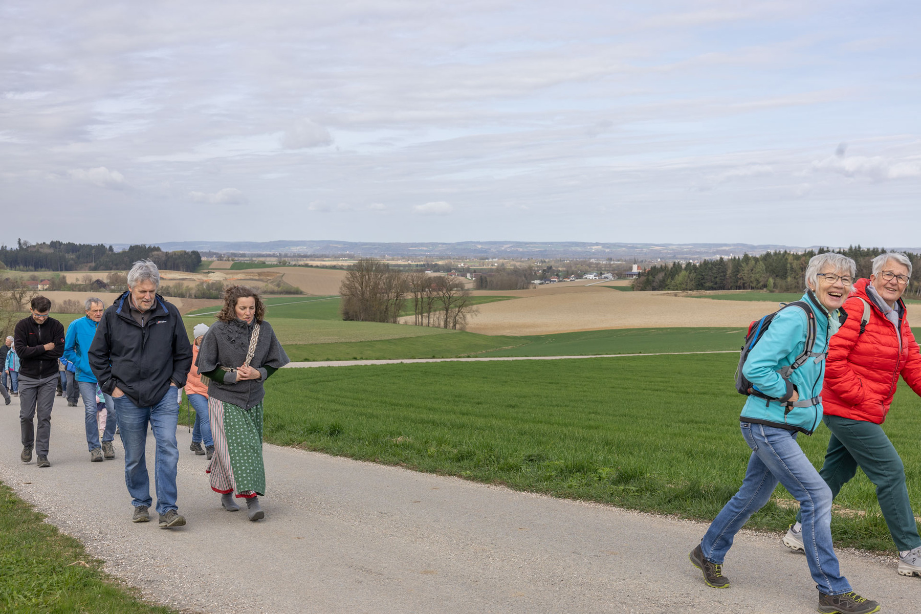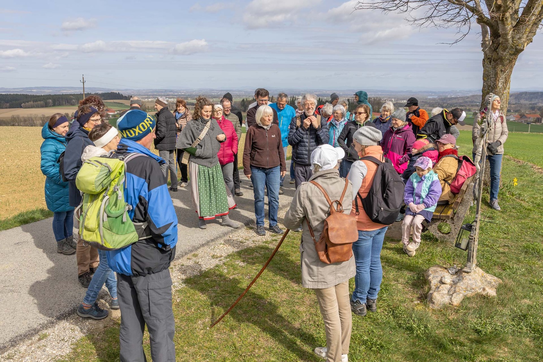 Im Anschluss machten sich die Teilnehmer:innen gemeinsam auf den Weg, um diese Erfahrung des Unterwegsseins auch praktisch zu erleben. Gespräche, Besinnung und gemeinsames Gehen stärkten die Gemeinschaft ebenso wie das Eierpecken. So wurde nach den Stationen beim Familienplatzl, der Waldlichtung, der Jägerkapelle und dem Christophkreuz der Ausgangspunkt - die Mörschwanger Pfarrkirche - wieder erreicht.