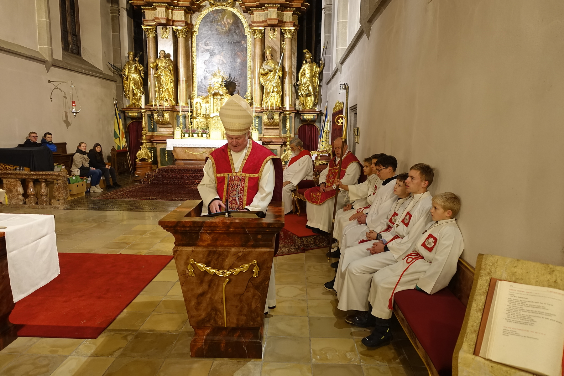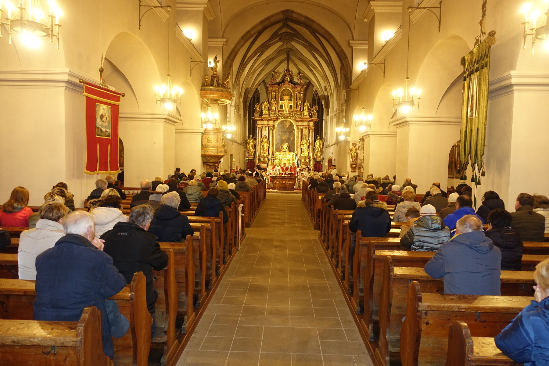 Im Rahmen der Dekanatsvisitation feierte Bischof Manfred Scheuer diesen Gottesdienst mit der Pfarrgemeinde und war ebenso bei der anschließenden Jause für die Musikgruppen im Pfarrheim dabei.