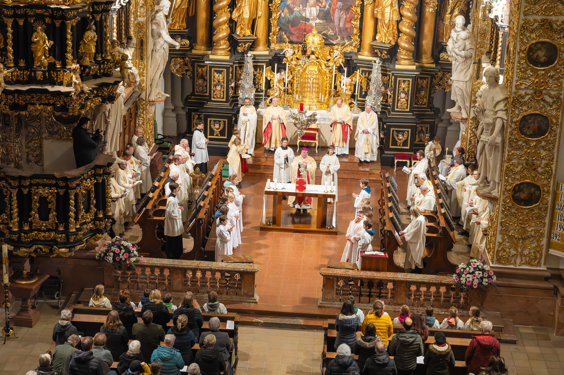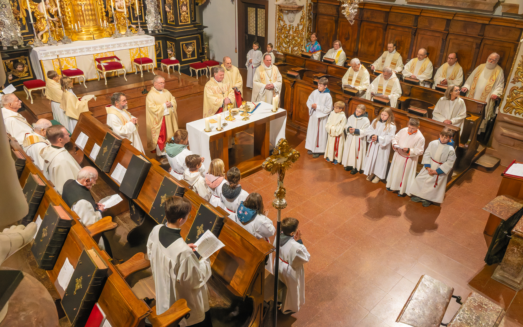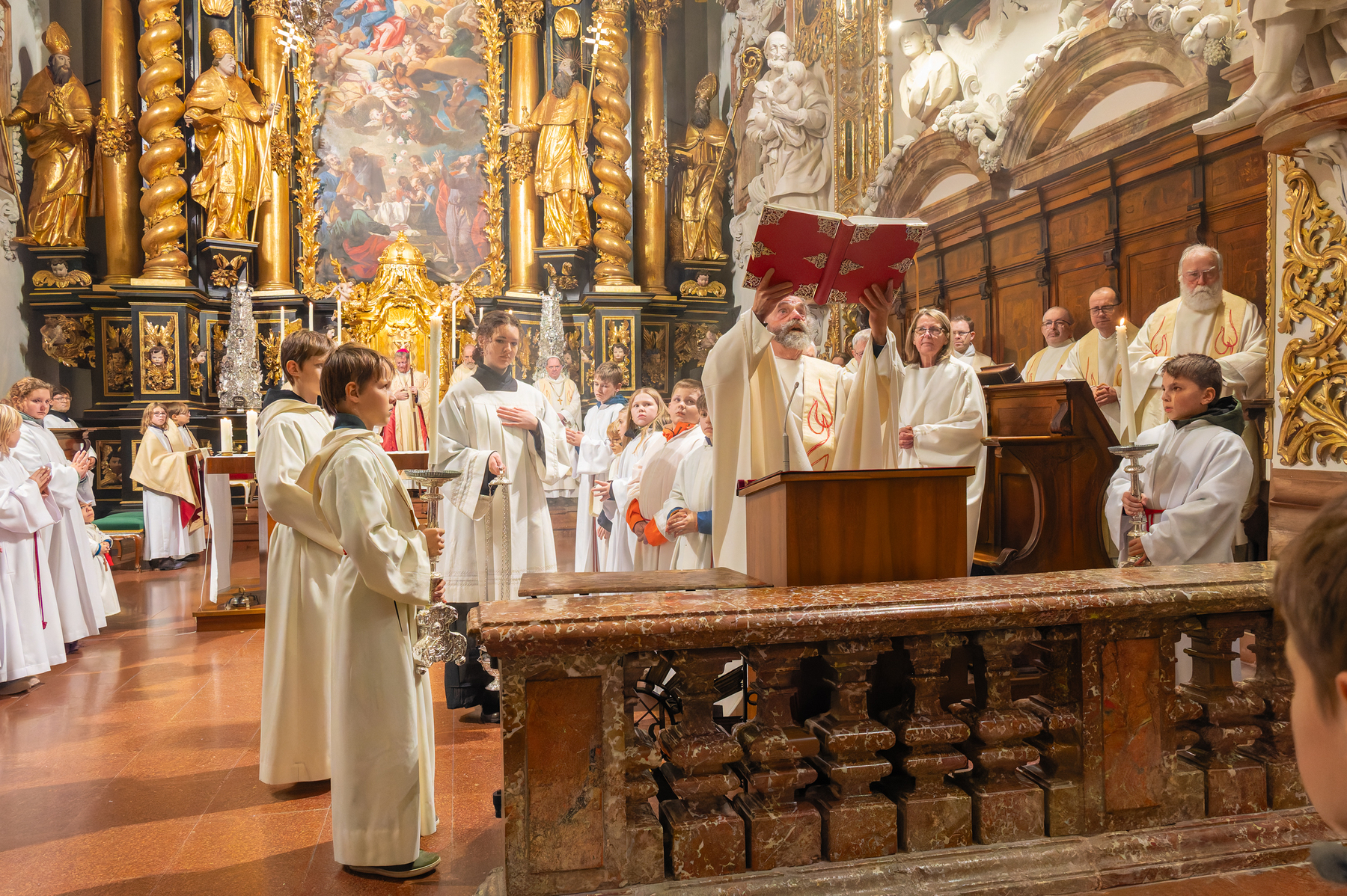Aus allen Pfarrgemeinden des Dekanats kamen Menschen in der Stiftskirche Schlierbach zusammen und gemeinsam Gottesdienst zu feiern. Dieses gemeinsame fand auch ihren Ausdruck in der musikalischen Gestaltung: der Stiftschor Schlierbach, der Kinderchor der Singschule der LMS Schlierbach, Kirchdorf und Micheldorf sowie die Musiker:innen musizierten erstmals gemeinsam und begleiteten den Gemeindegesang.