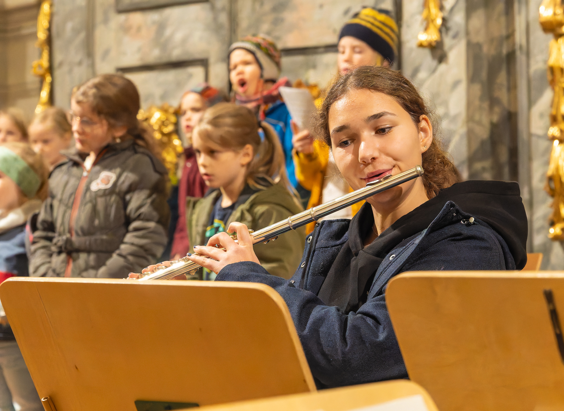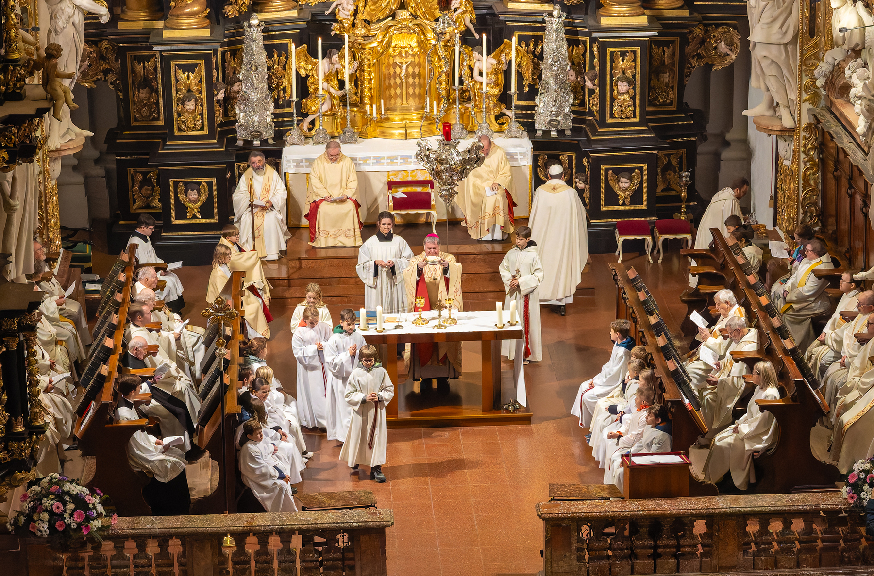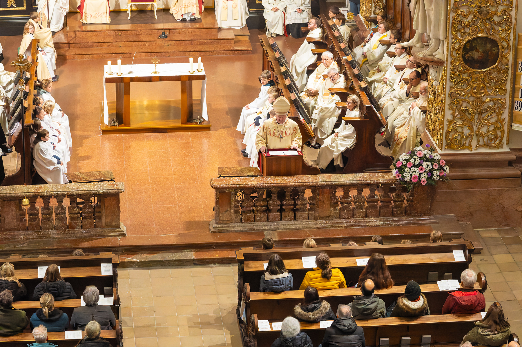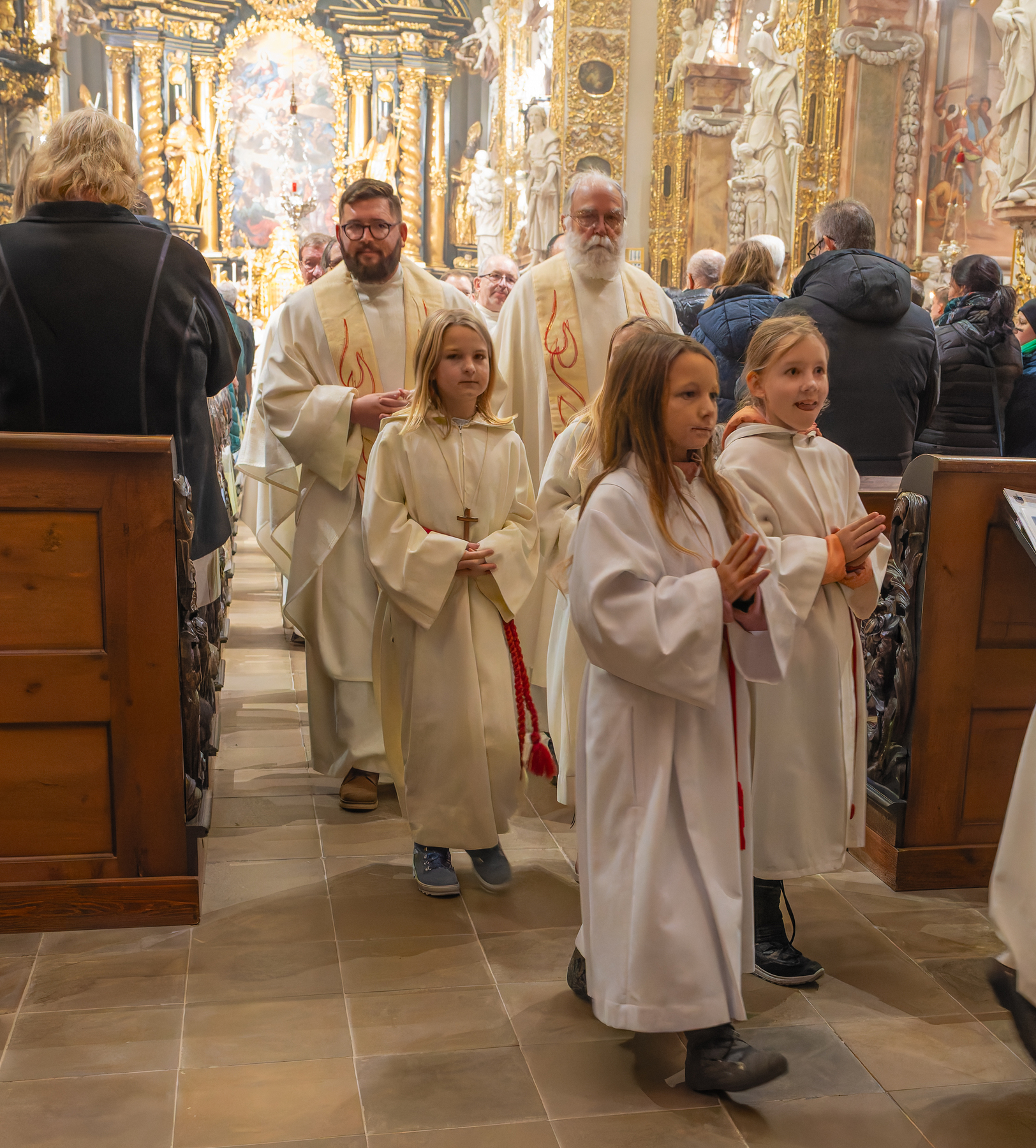 Aus allen Pfarrgemeinden des Dekanats kamen Menschen in der Stiftskirche Schlierbach zusammen und gemeinsam Gottesdienst zu feiern. Dieses gemeinsame fand auch ihren Ausdruck in der musikalischen Gestaltung: der Stiftschor Schlierbach, der Kinderchor der Singschule der LMS Schlierbach, Kirchdorf und Micheldorf sowie die Musiker:innen musizierten erstmals gemeinsam und begleiteten den Gemeindegesang.